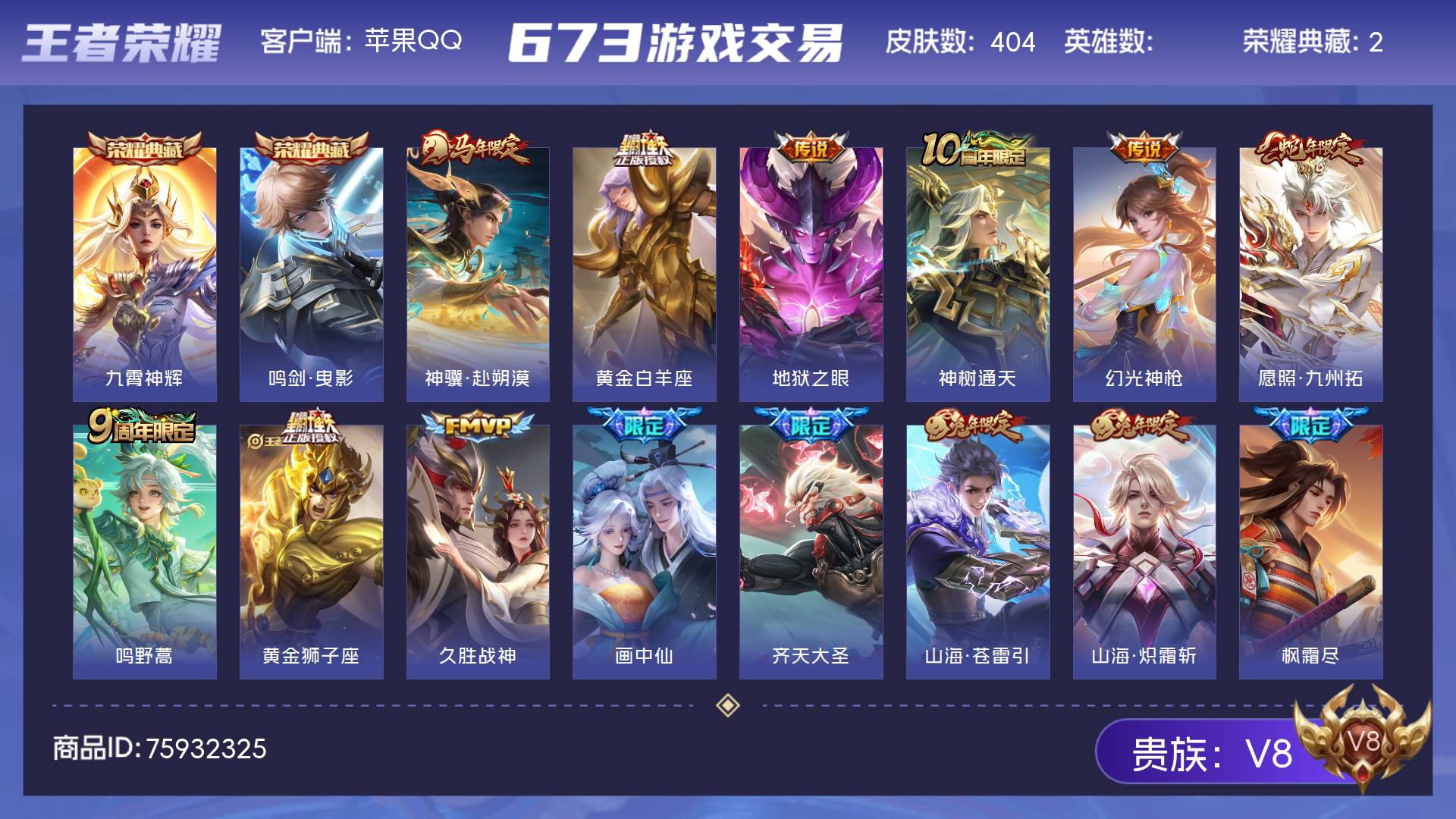 V8 皮肤404 无双王者 荣耀典藏2 传说23 其他皮肤385