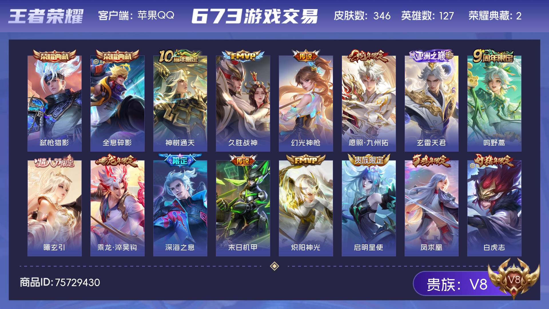 V8 皮肤346 英雄127 永恒钻石 荣耀典藏2 传说18 其他皮肤332