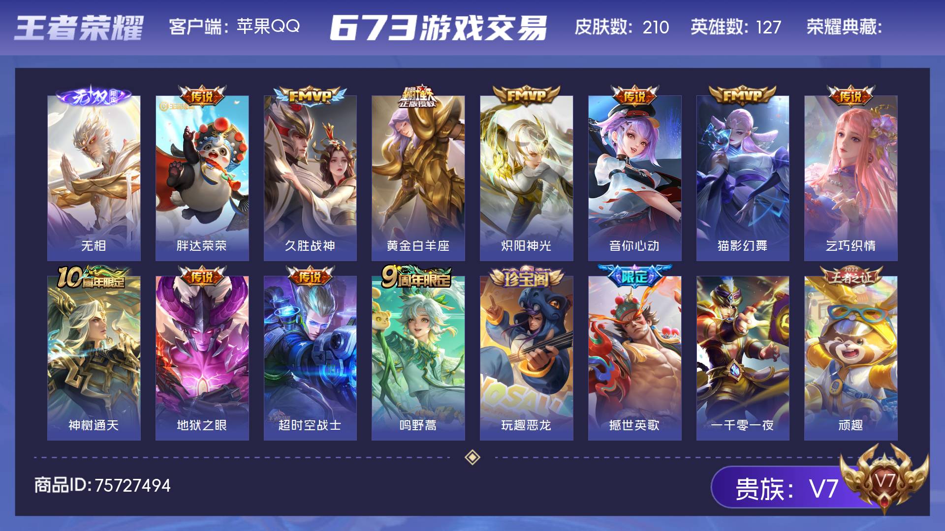 V7 皮肤210 英雄127 荣耀王者 无双皮肤1 星传说1 传说11 其他皮肤204