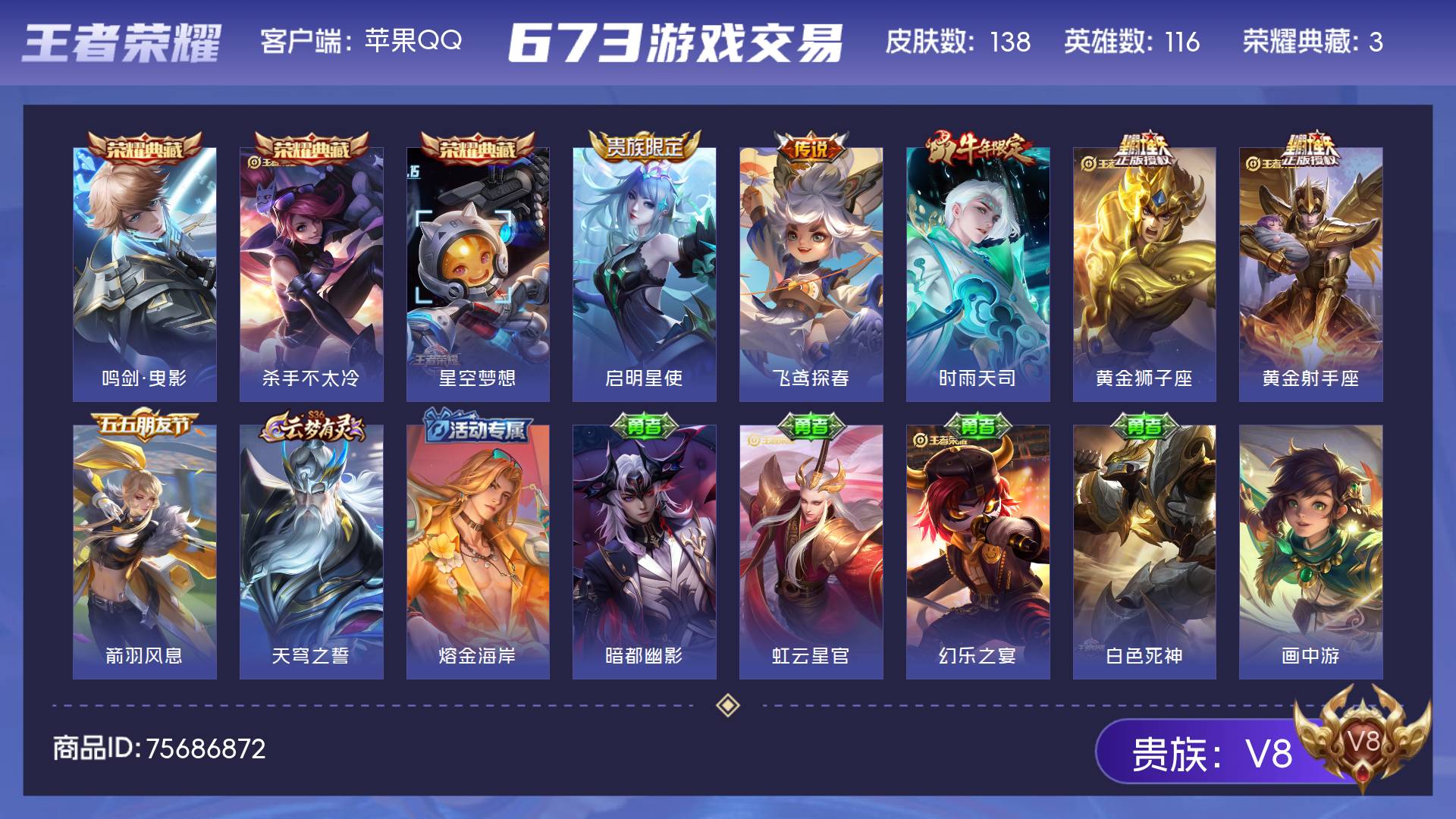 V8 皮肤138 英雄116 最强王者 荣耀典藏3 传说5 其他皮肤136