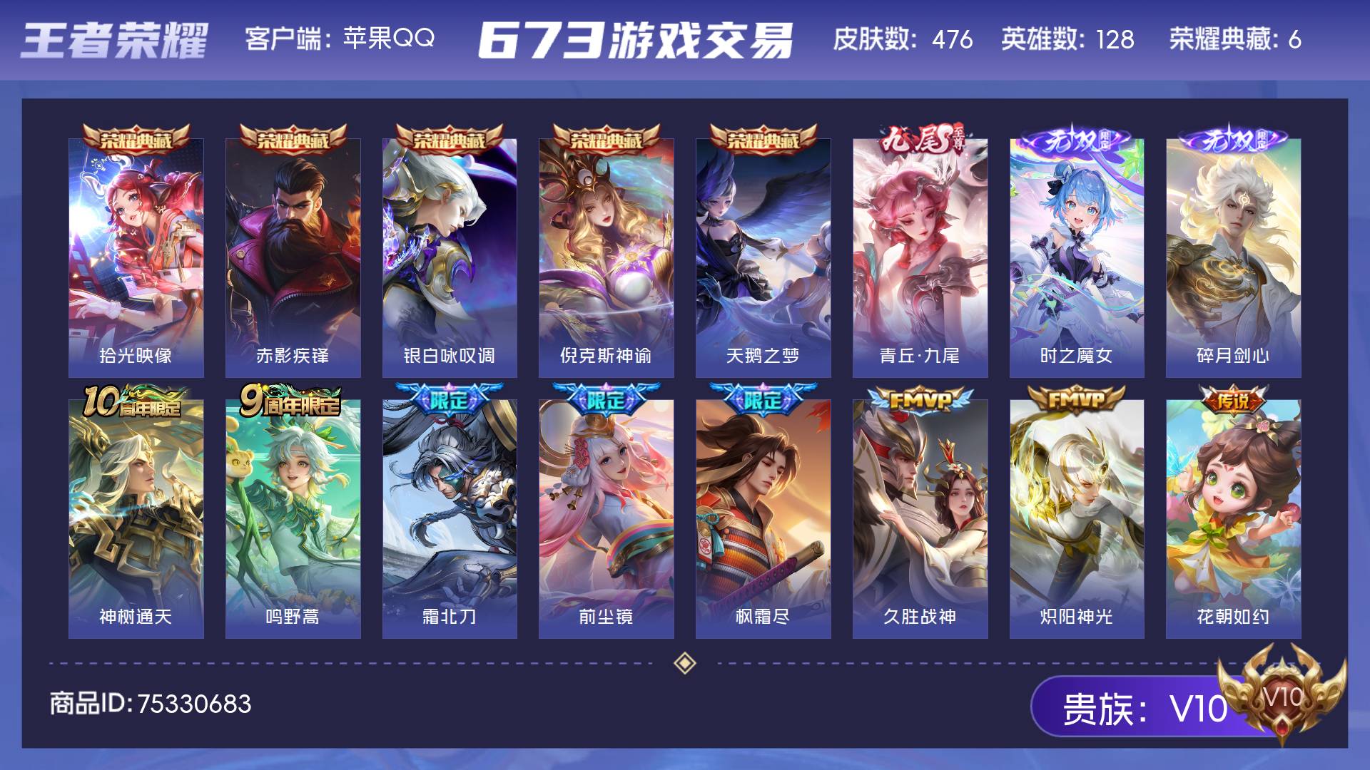 苹果QQ-可二次-皮肤510 英雄129 荣耀典藏5 无双皮肤6 珍品传说3 传说56 其他皮肤444-