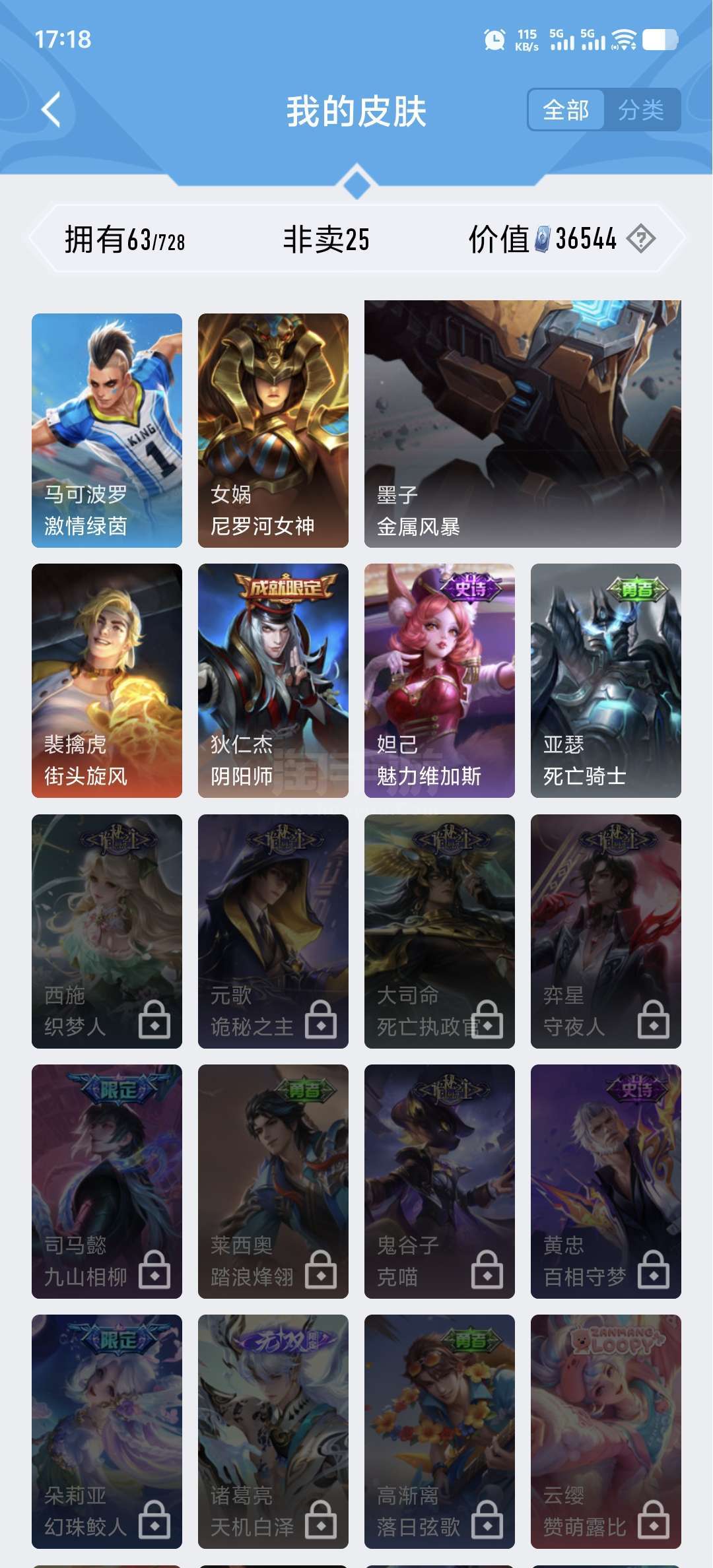 【小国标孙悟空,小国标百里守约】V5-最强王者段位-53英雄-35皮肤-0典藏