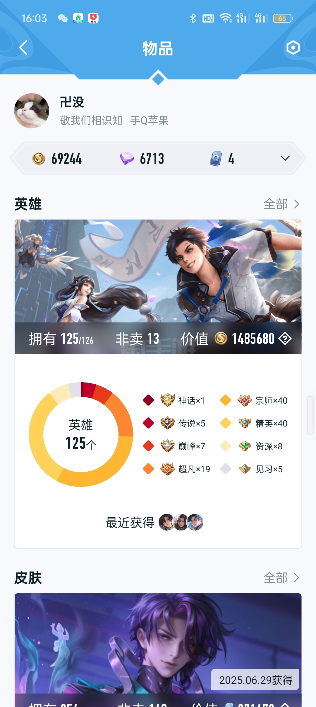 王者302个皮肤,两个典藏贵族八