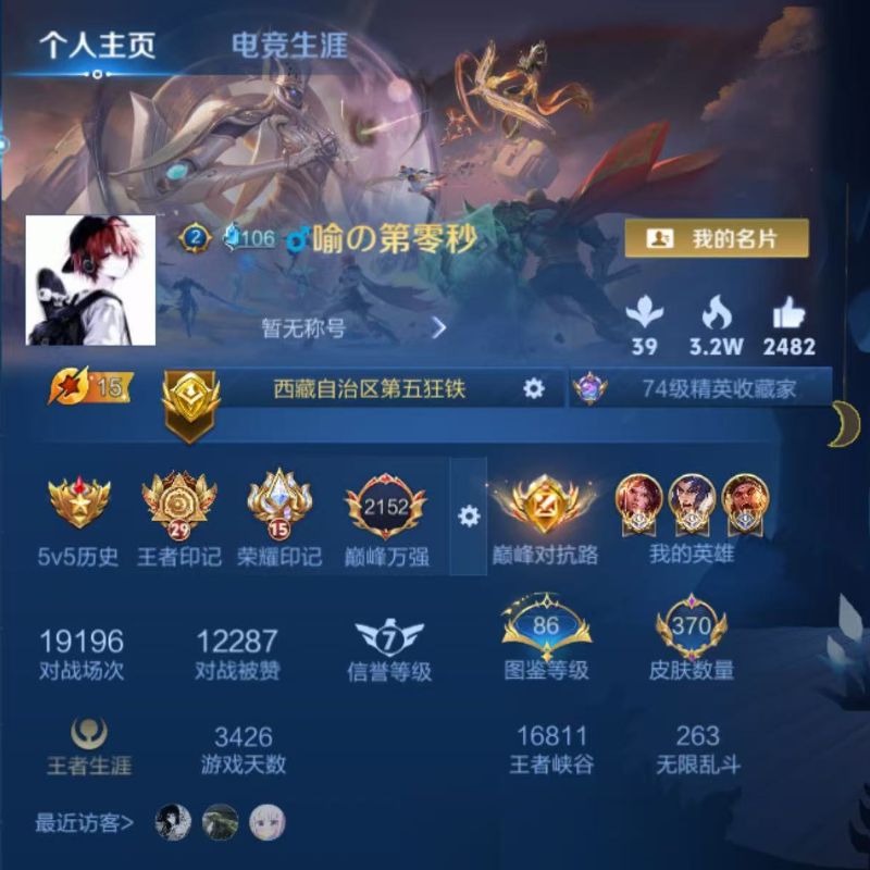 实名: 可修改 贵族等级: V7 英雄数: 125 皮肤数: 196 星传说: