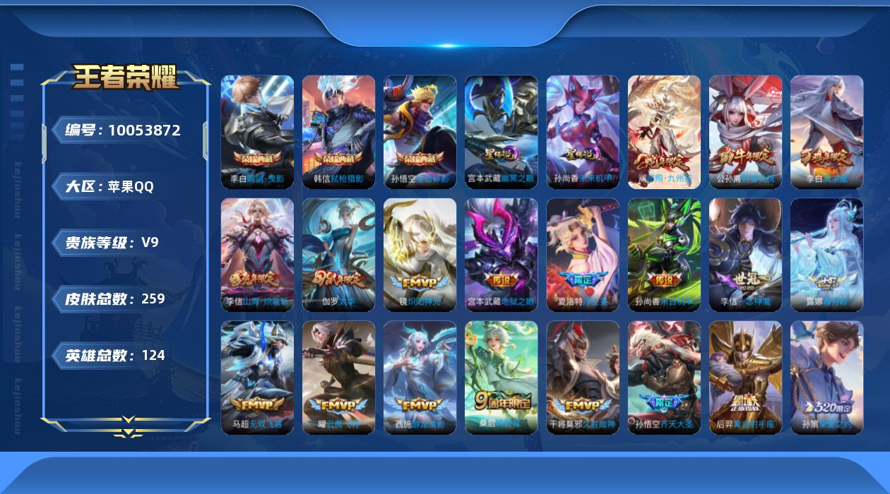 【10053872】[10053872]实名: 可修改 英雄数: 124 皮肤