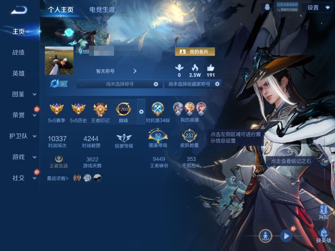 贵族等级: V8 英雄数: 127 皮肤数: 312 荣耀水晶: 星域神启 星