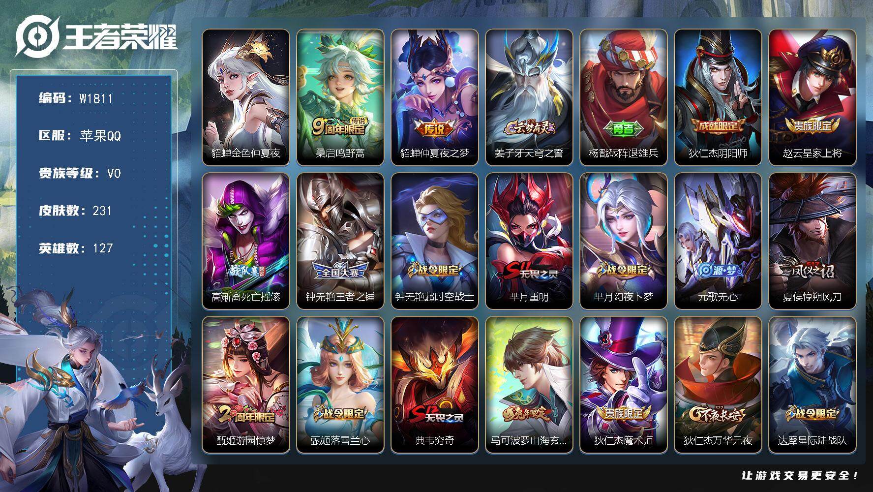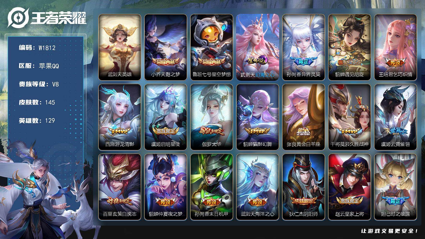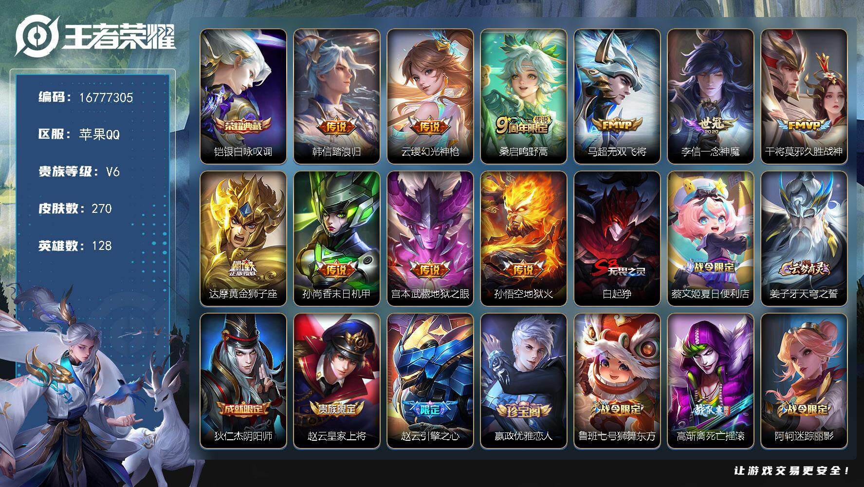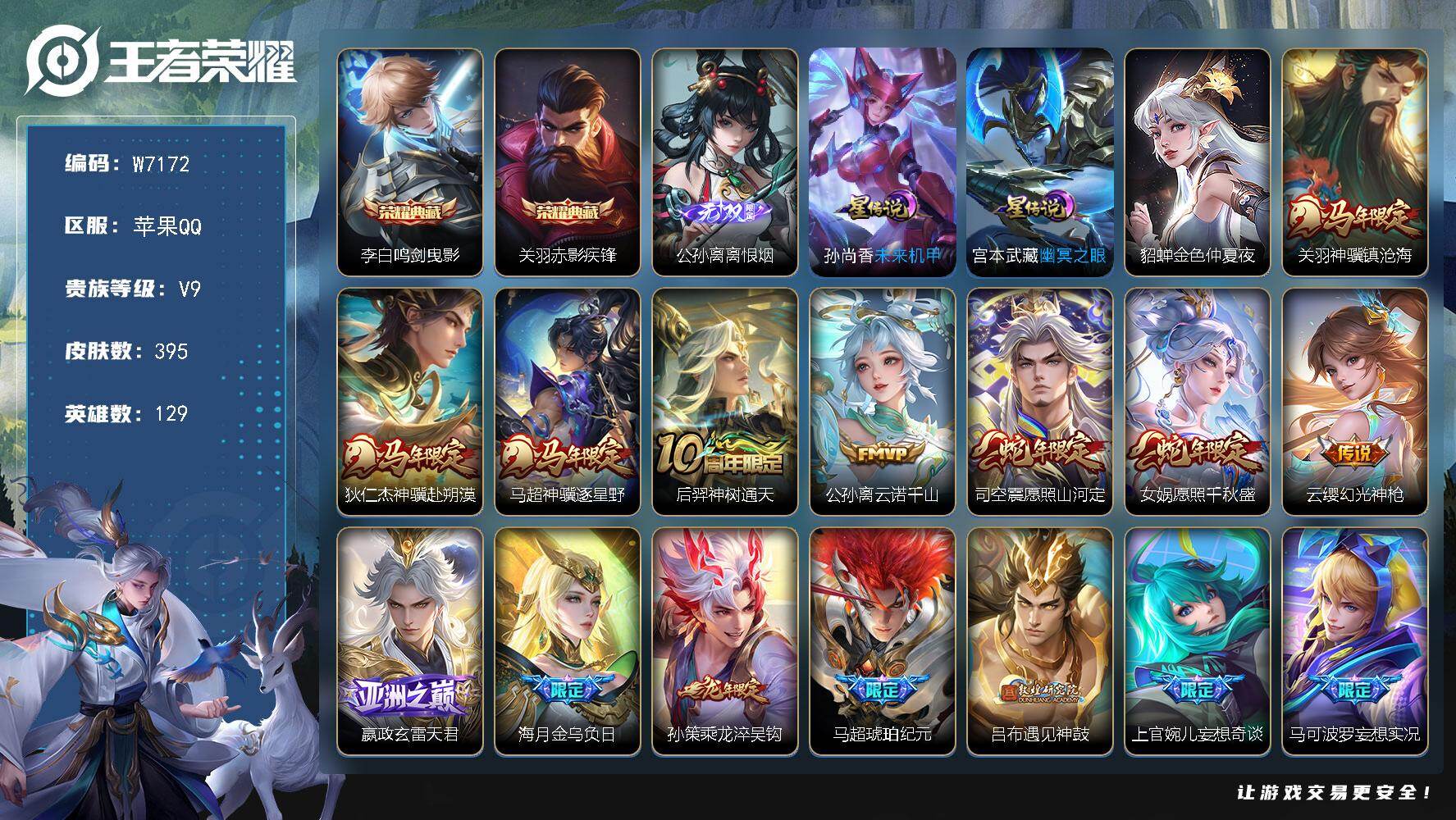 129英雄-240皮肤-苹果QQ 可二次/v9打野男号/