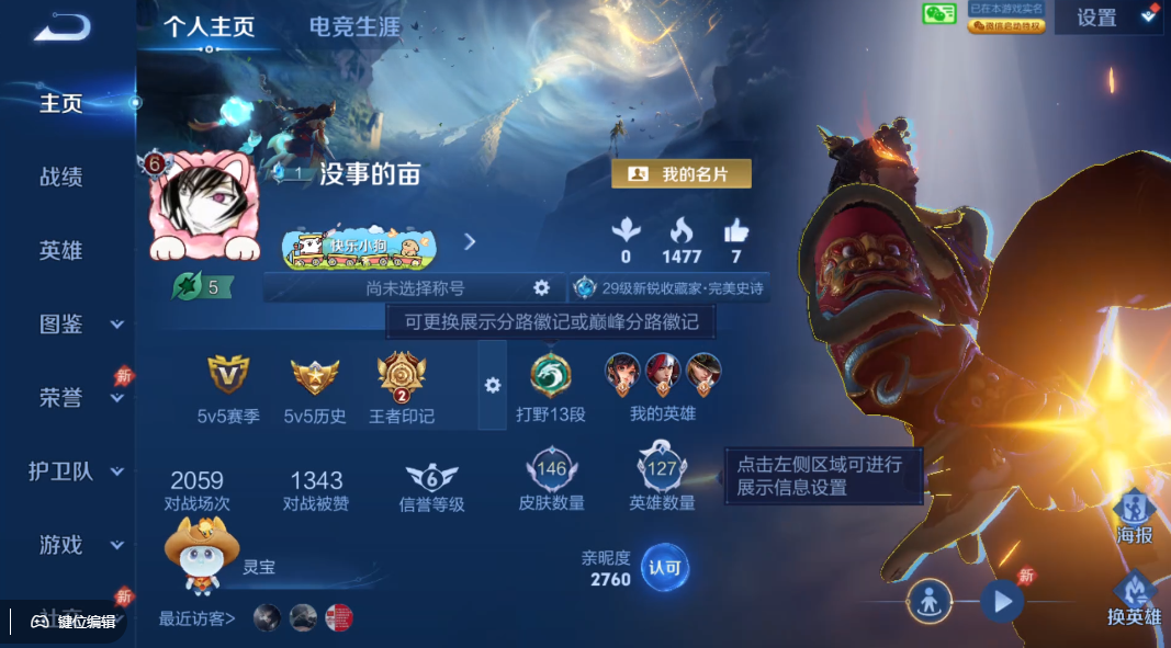 【16777305】贵族等级6/荣耀典藏数量1/传说皮肤数量10/史诗皮肤数量