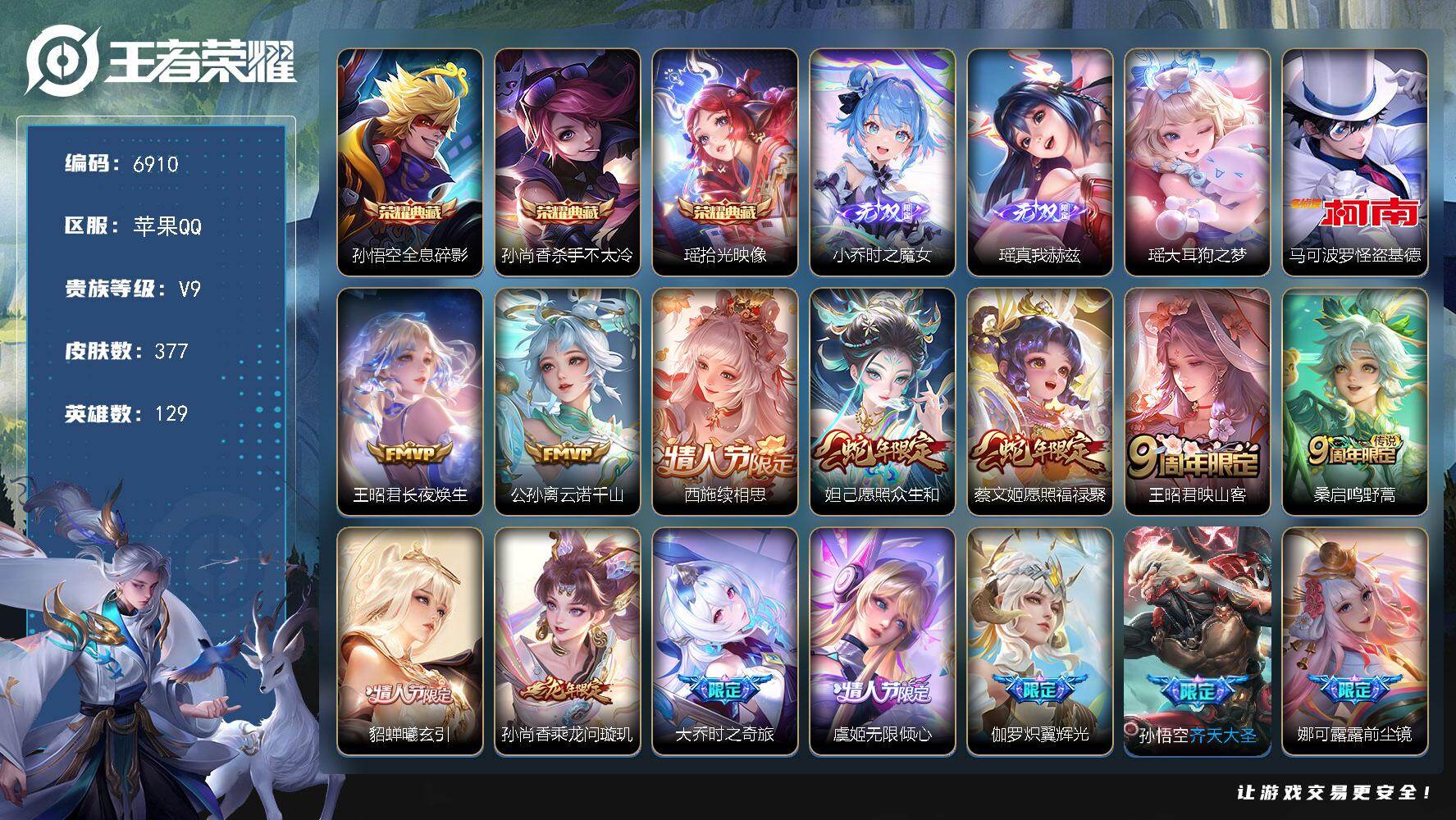 【W6475】苹果Q区-可二次-贵4-80英雄-53皮肤-6传说-17史诗-1
