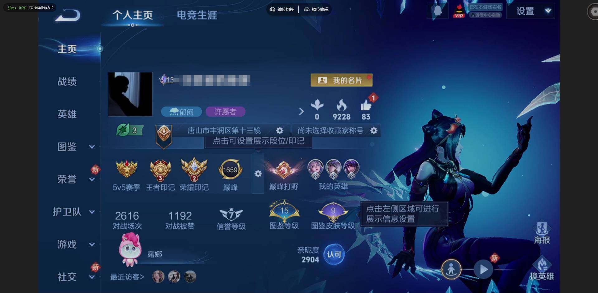实名: 可修改 贵族等级: V3 英雄数: 70 皮肤数: 43 星传说: 幽