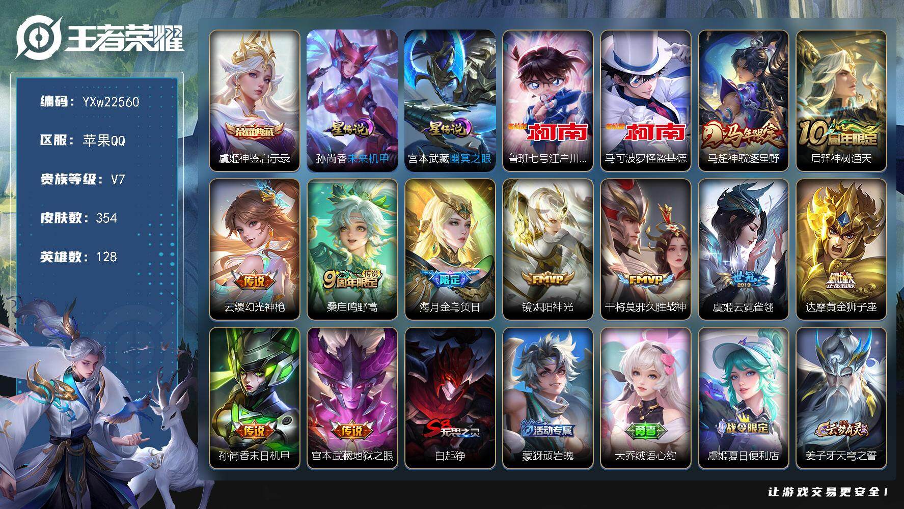 苹果Q-V0-永恒钻石III段位-128英雄-229皮肤-1典藏皮肤-9传说-6