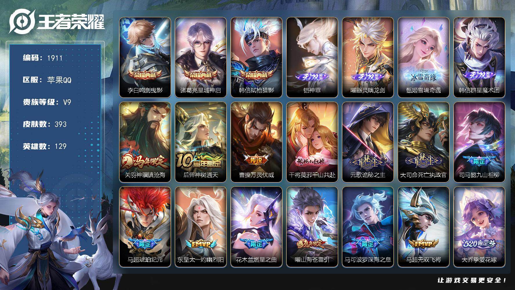 【W6788】苹果QQ-无二次-贵9-129英雄-386皮肤-2典藏-35传说