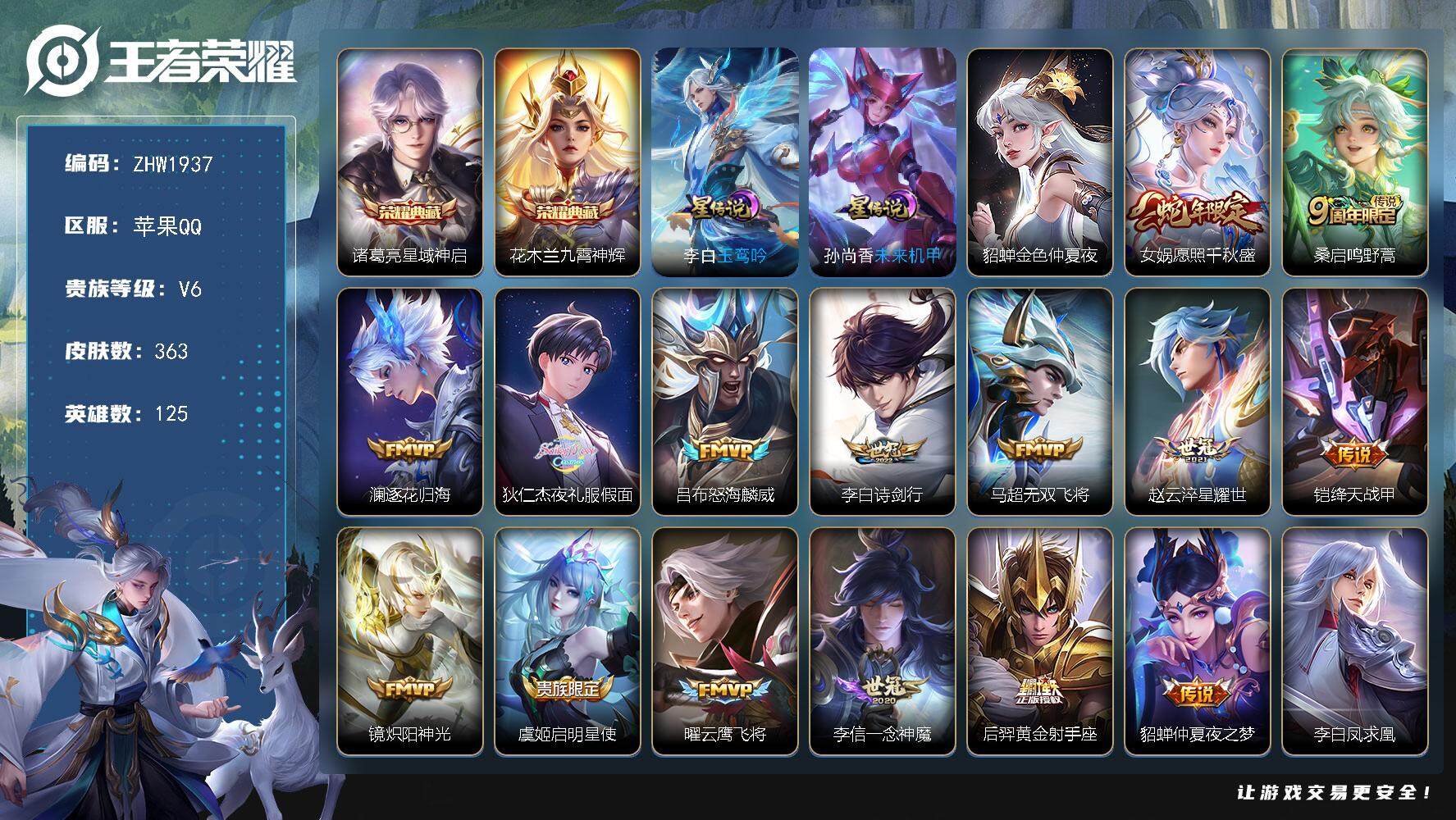 苹果QQ-2典藏-17传说-363皮肤-125英雄-至尊星耀-