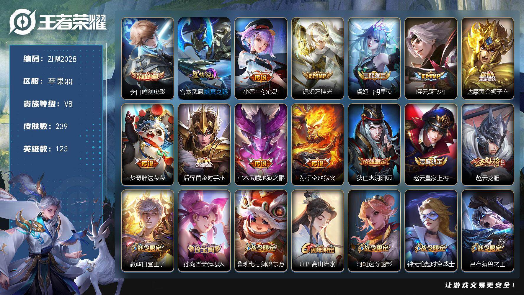 苹果QQ-1典藏-9传说-239皮肤-123英雄-荣耀黄金-