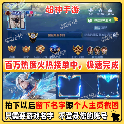 【安卓苹果QV区】刷王者5万纯人气热度,可多拍领头像框排名