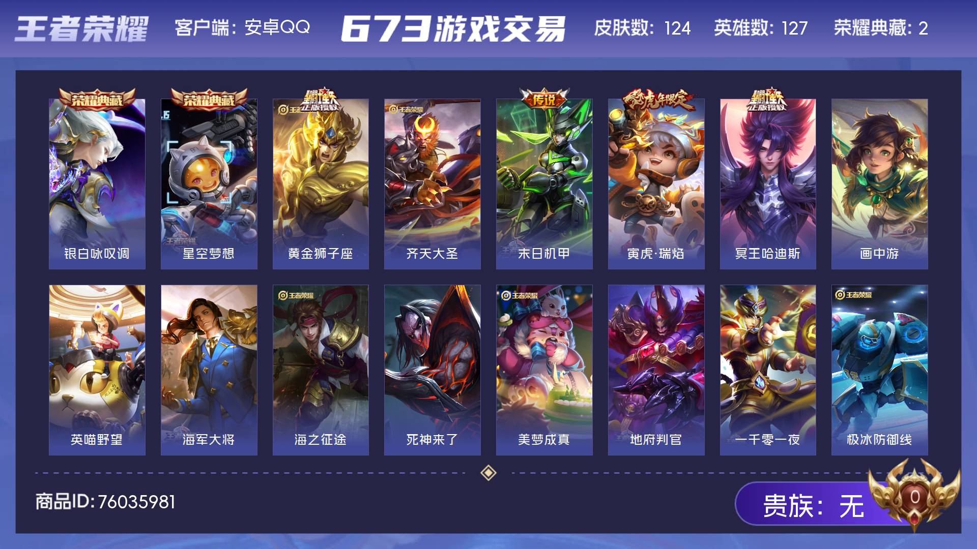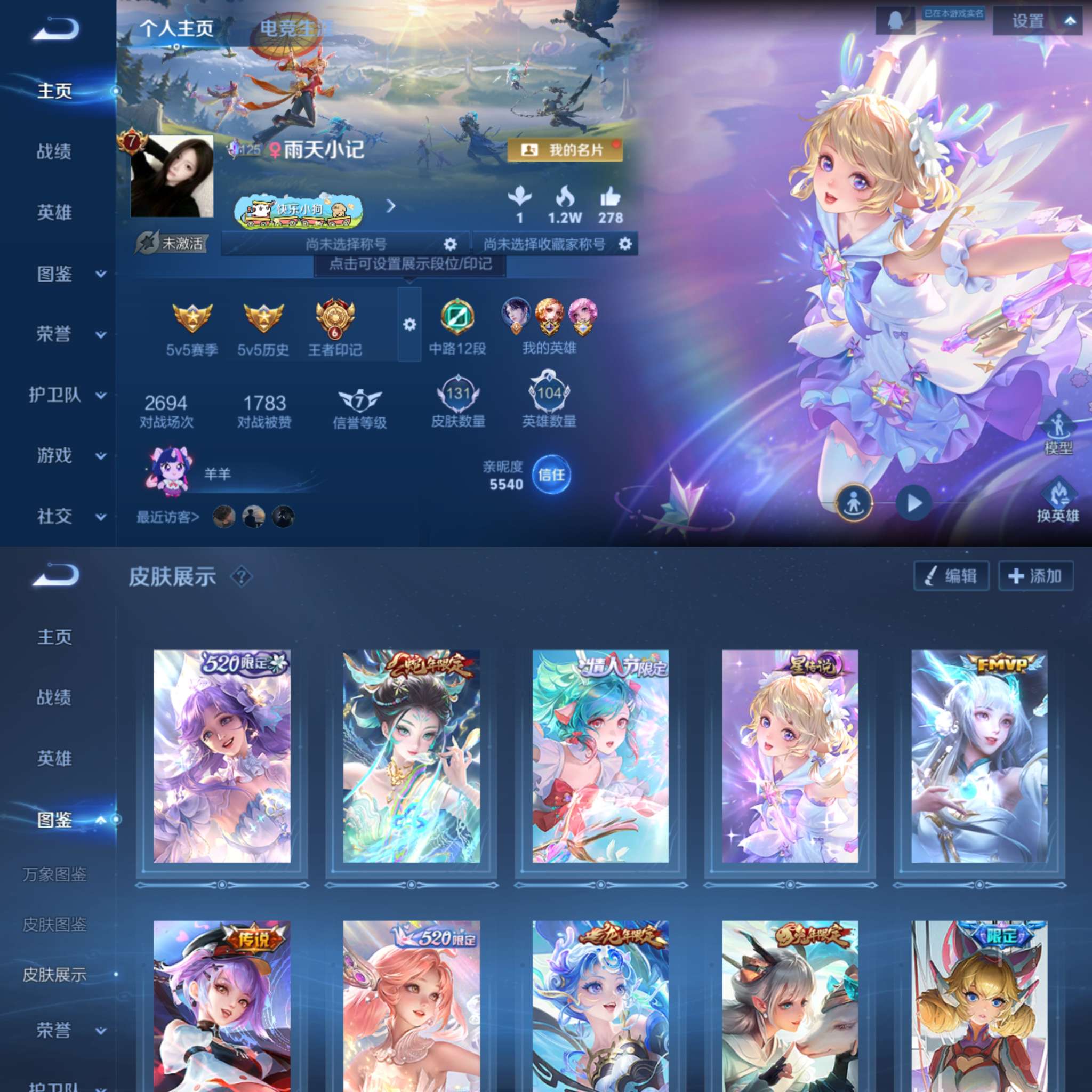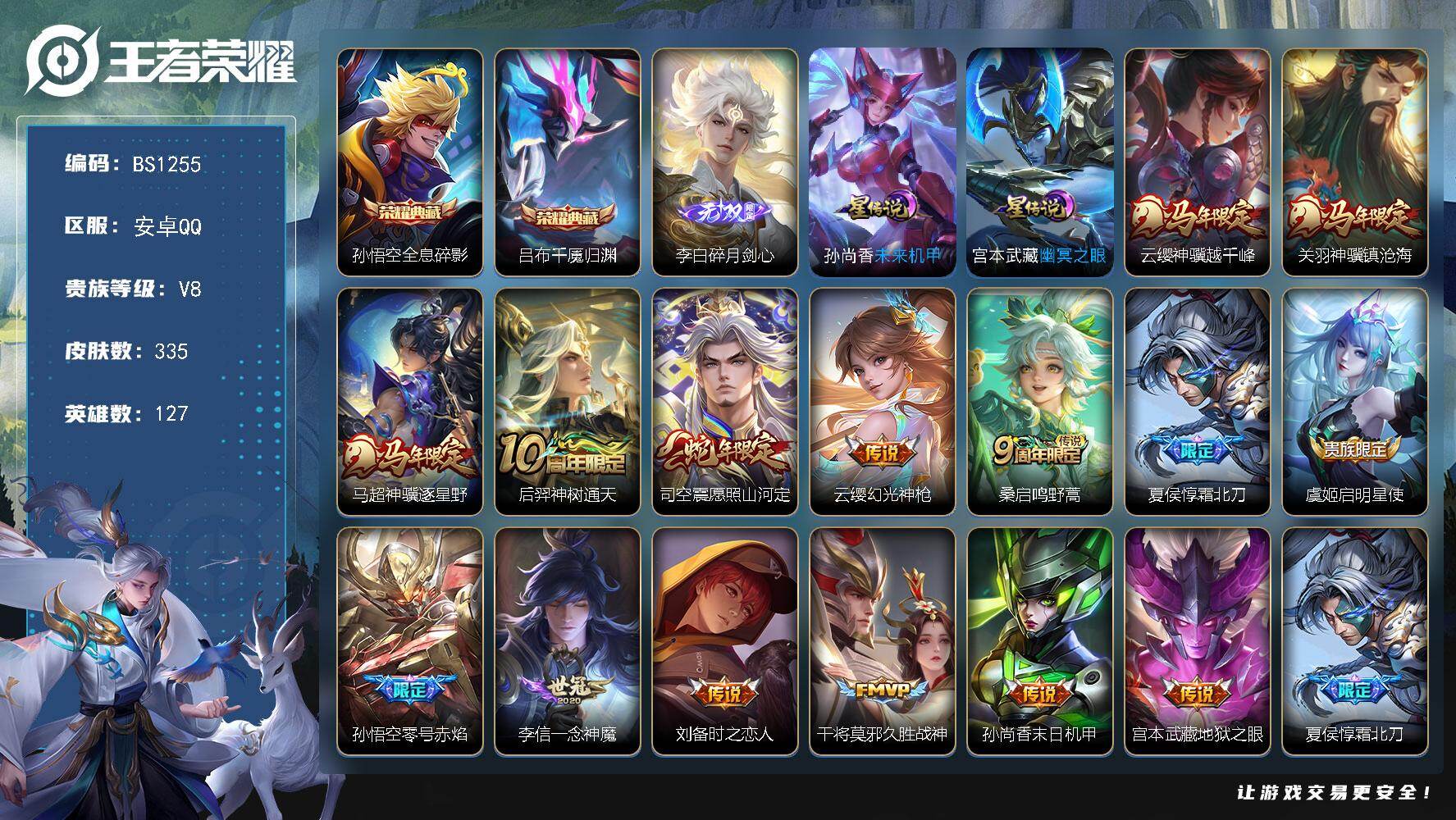安卓Q-V8-最强王者段位-127英雄-335皮肤-2典藏皮肤-1无双-15传
