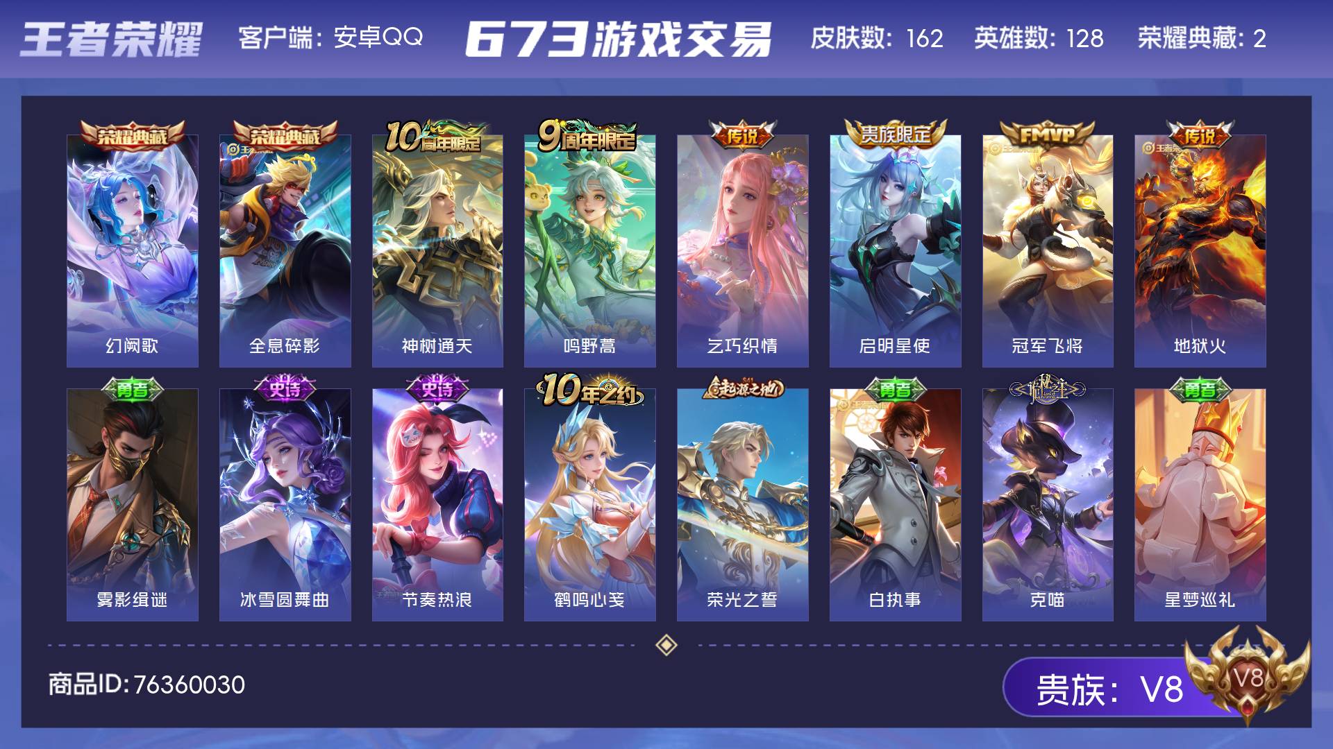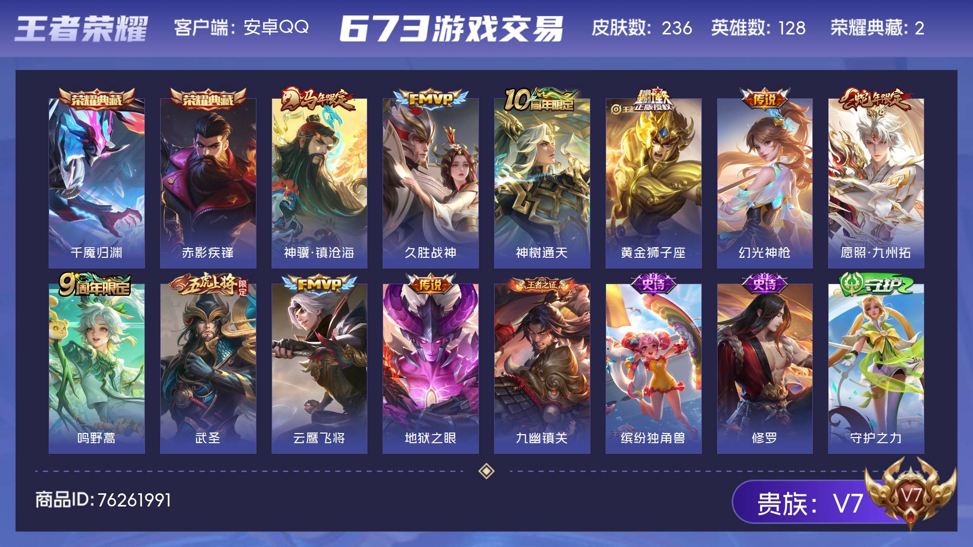 V7 皮肤236 英雄128 无双王者 荣耀典藏2 星传说1 传说10