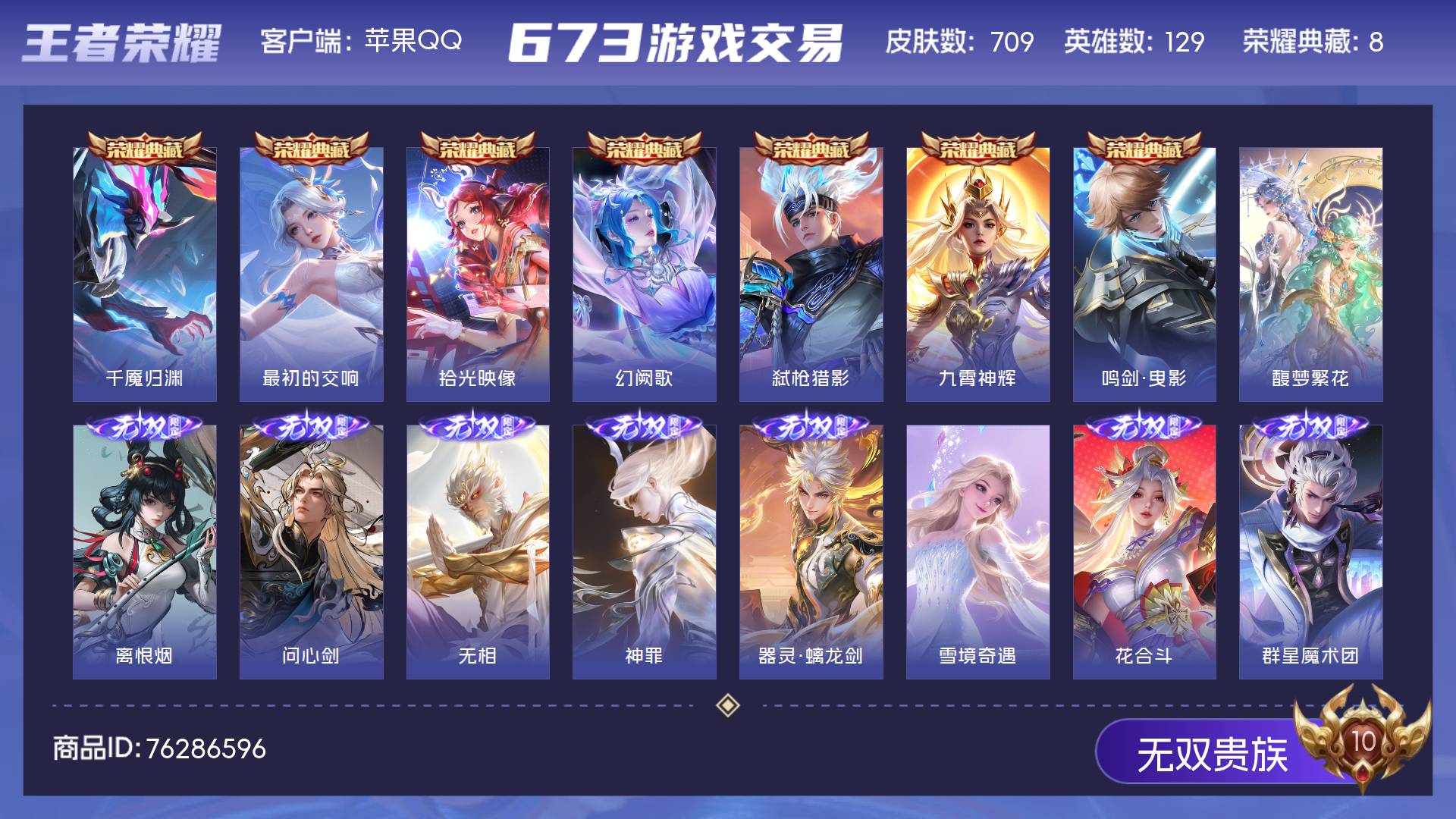 无双贵族 皮肤709 英雄129 荣耀王者 荣耀典藏8 珍品无双1 无双皮肤13 珍品传说7 传说1
