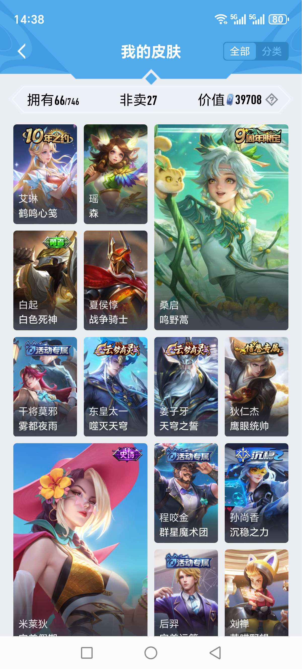 王者荣耀【安卓QQ】V8 1典藏 18传说 66史诗 240皮肤 绝世王者