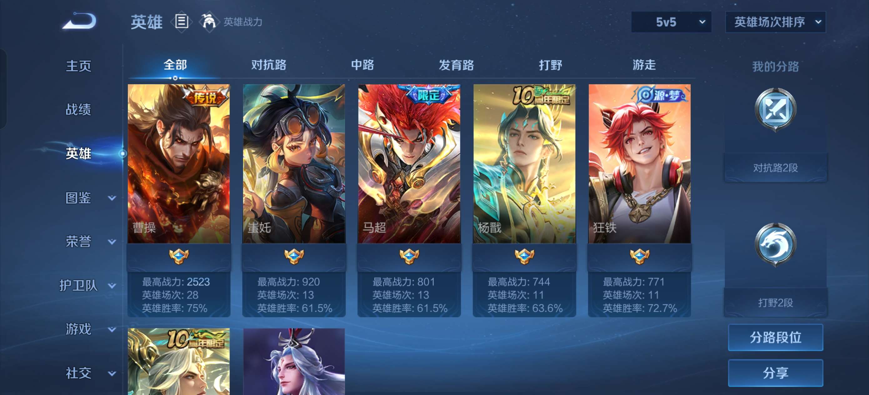 王者荣耀【安卓QQ】马超琥珀纪元曹操传说杨戬传说三星堆满套