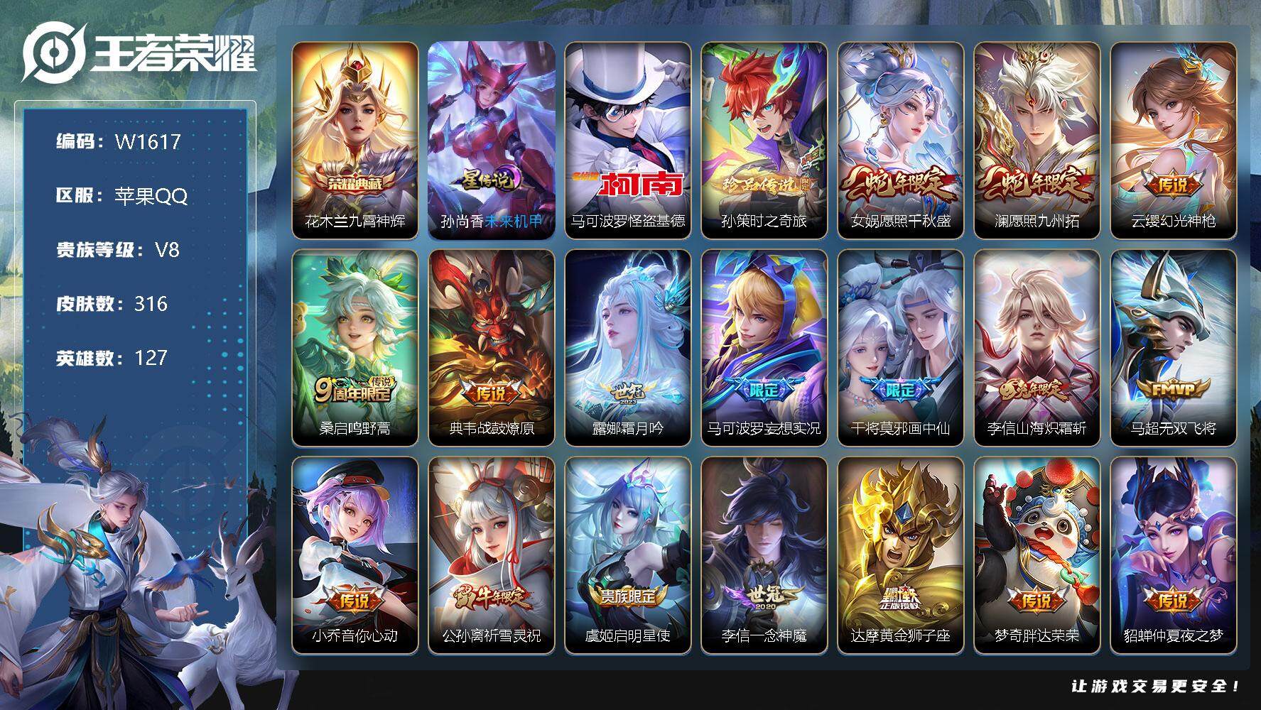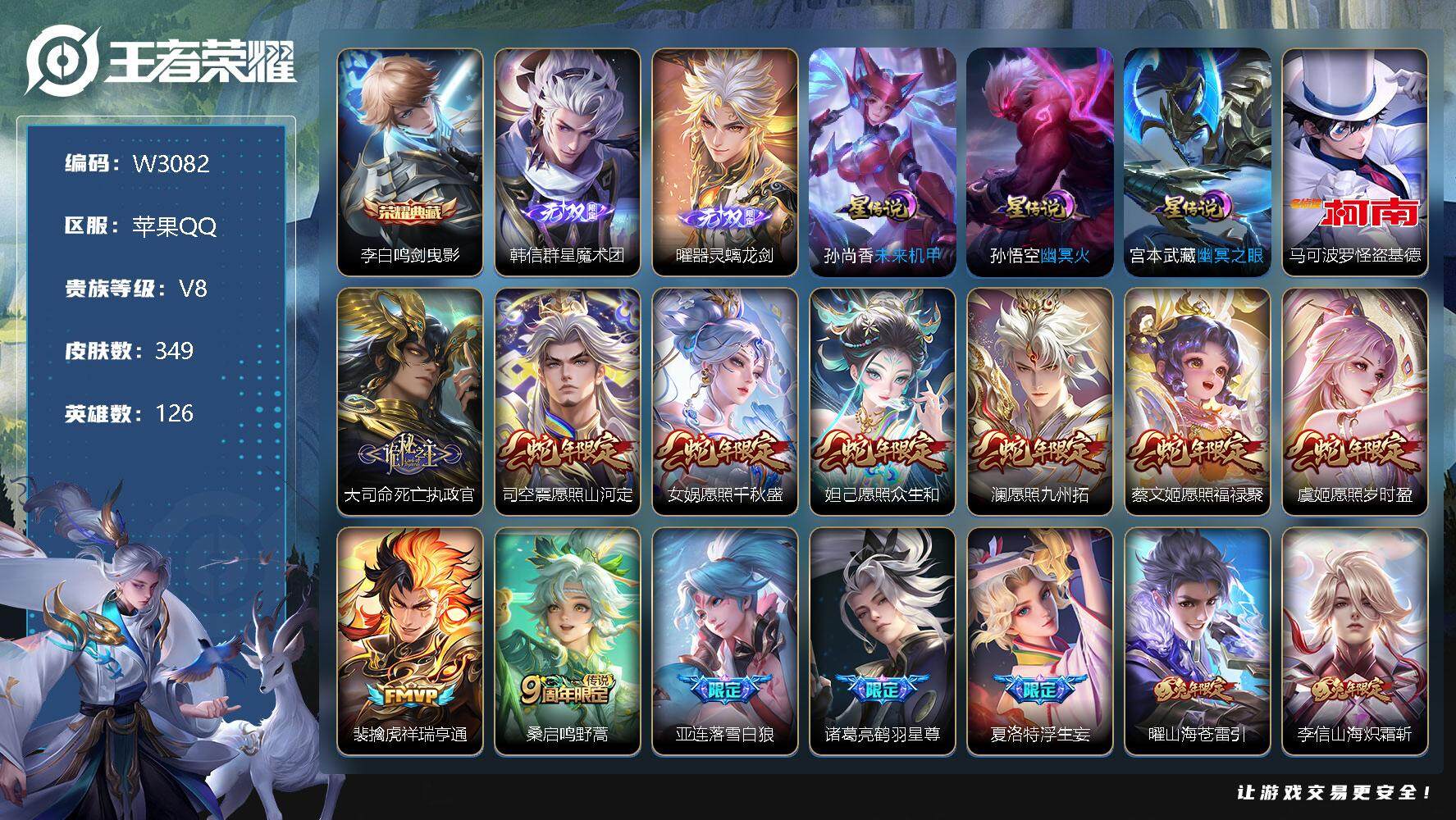王者荣耀【苹果QQ】【W3082】鸿兔大展天幕-苹果Q区-无二次-贵8-126英雄-349皮肤-1