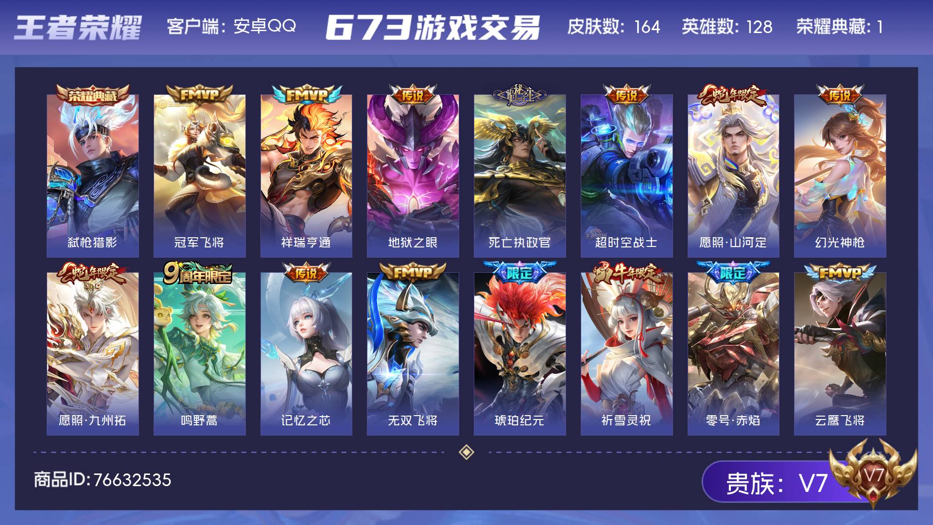 V7 皮肤164 英雄128 至尊星耀 荣耀典藏1 传说17