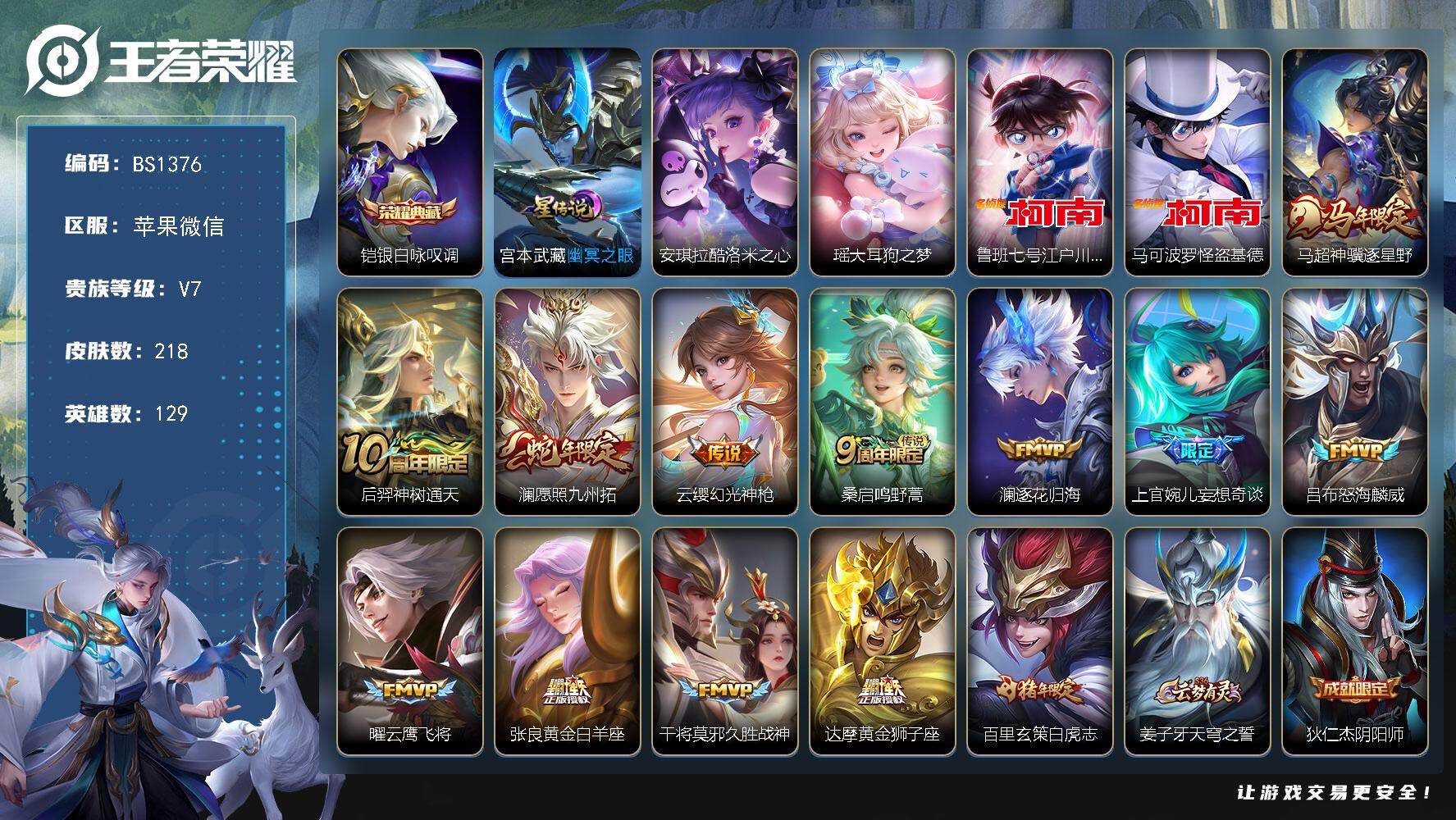 苹果Q-V7-至尊星耀V段位-127英雄-148皮肤-6传说-27史诗【英雄