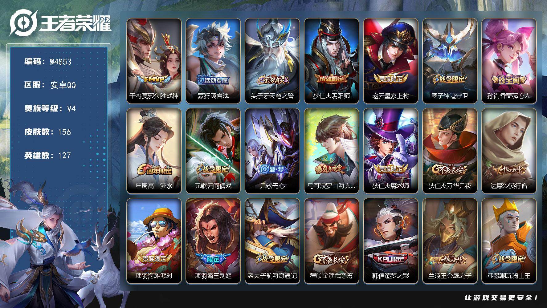 【W4853】极品低场次开局号-(热门皮肤)久胜战神.涂山容容.霸王别姬.神威