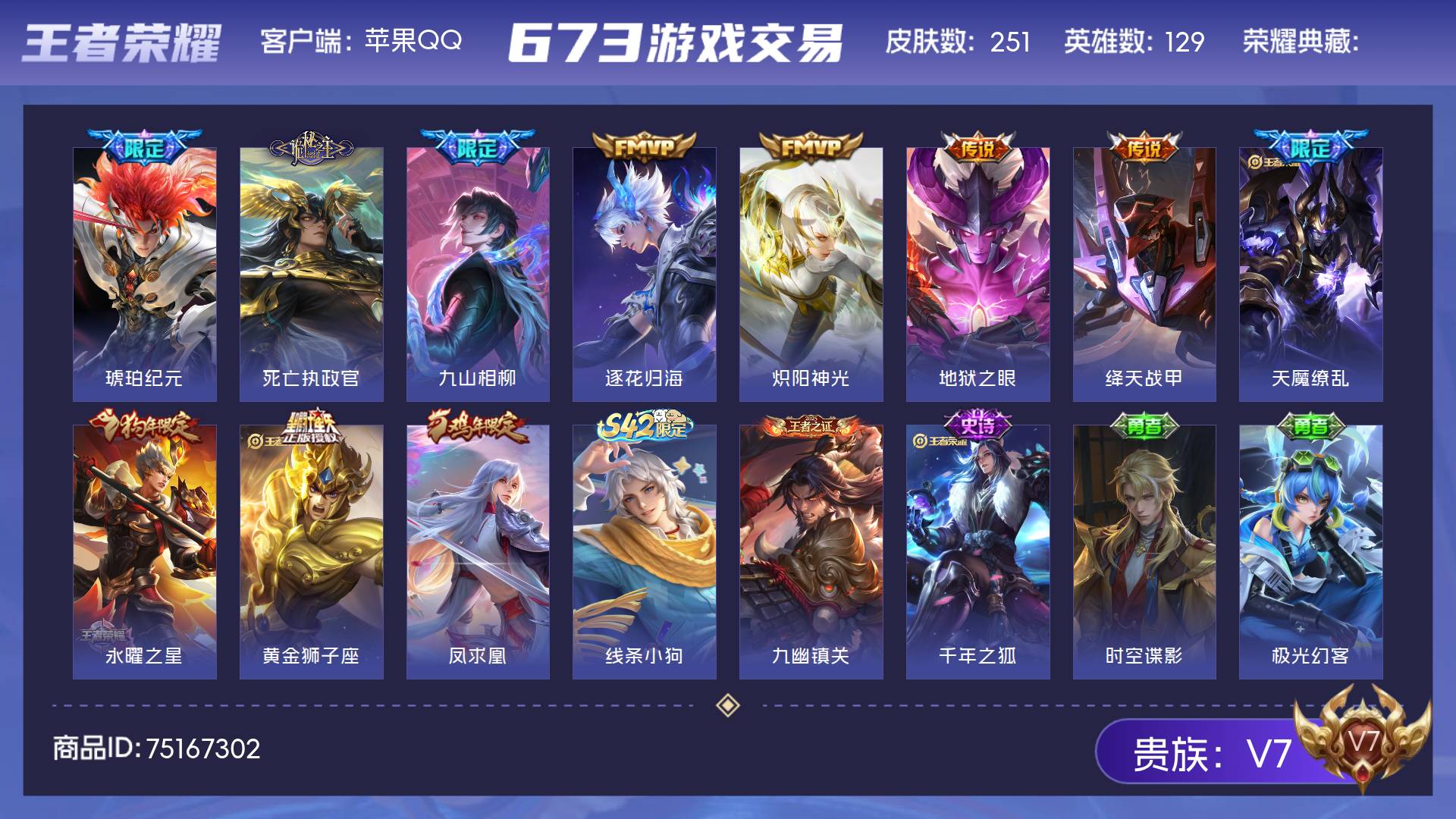 V7 皮肤251 英雄129 至尊星耀 星传说1 传说11 其他皮肤245