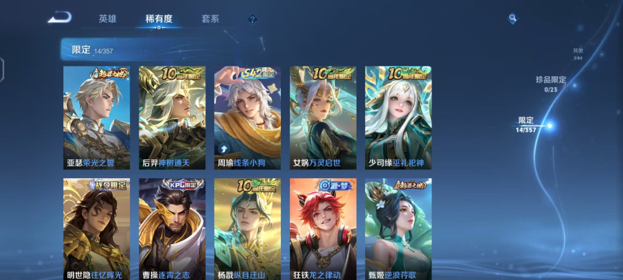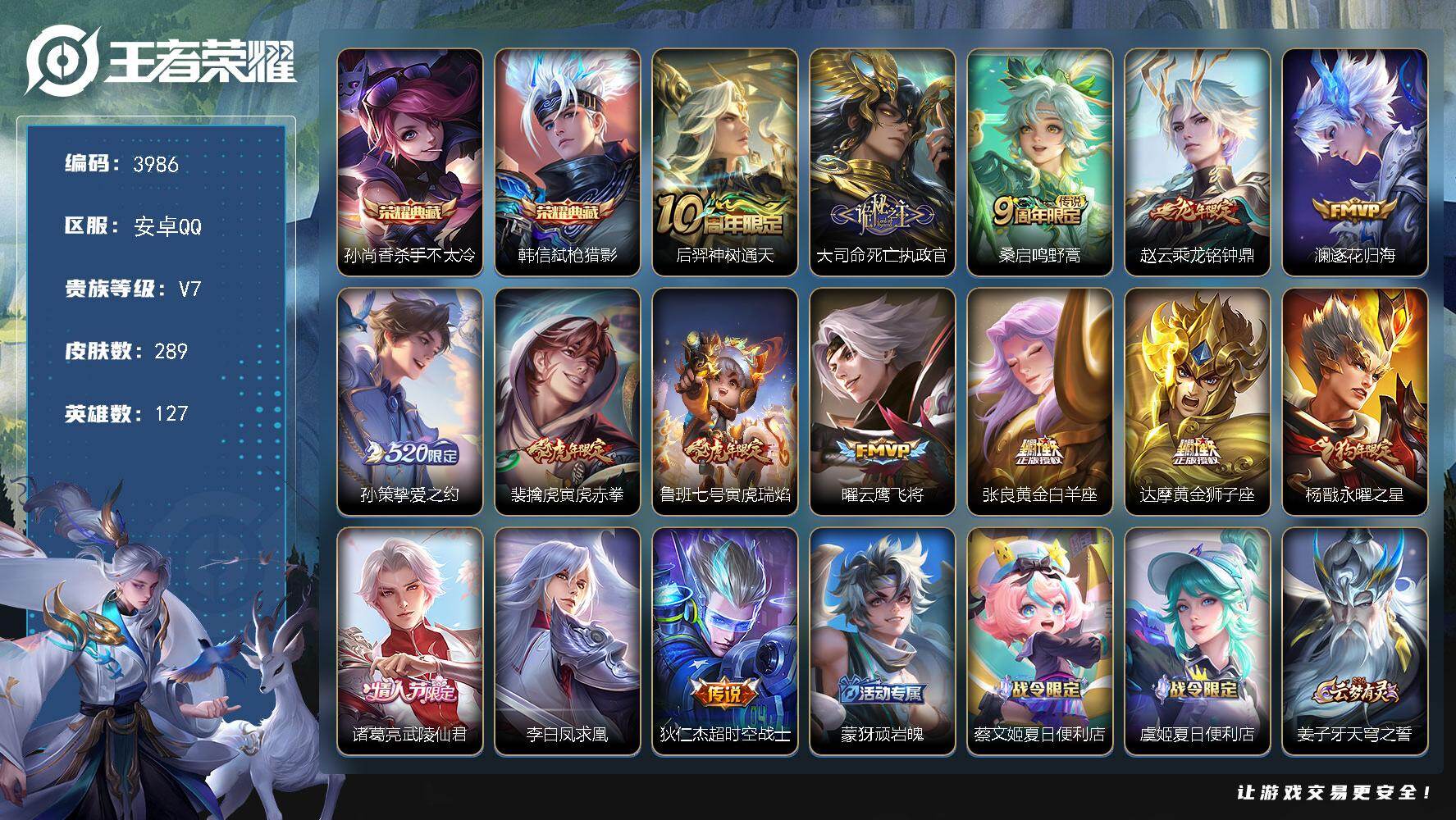 安卓Q-V7-最强王者段位-127英雄-289皮肤-2典藏皮肤-15传说-98