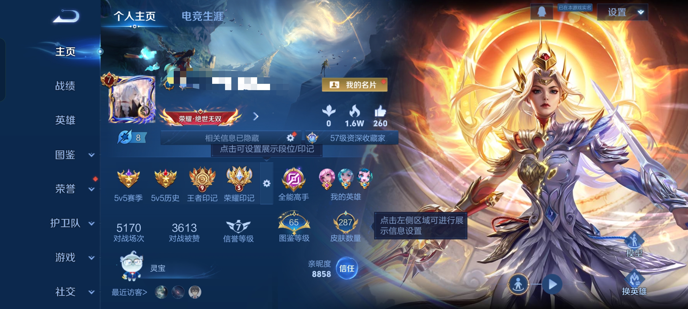 V7 皮肤196 英雄129 至尊星耀 荣耀典藏1 无双皮肤1 传说9 其他皮肤190