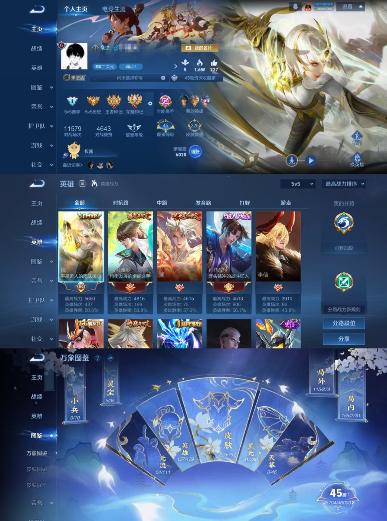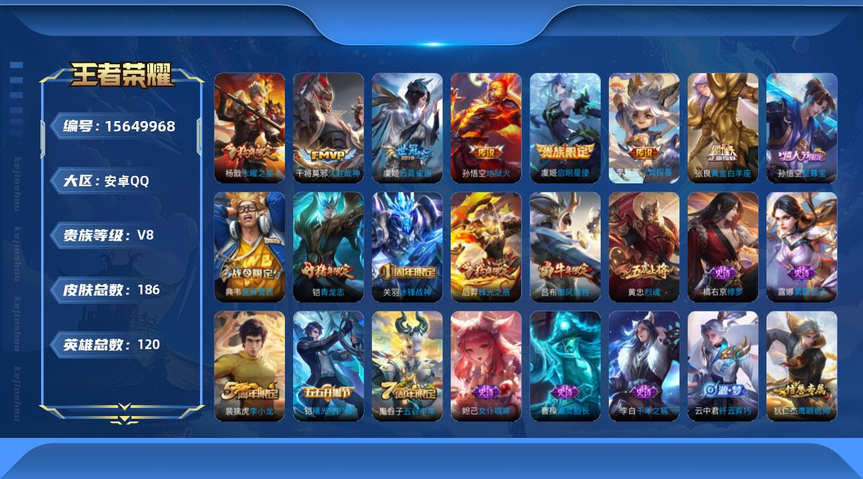 安卓Q-V7-至尊星耀V段位-125英雄-240皮肤-1典藏皮肤-16传说-6
