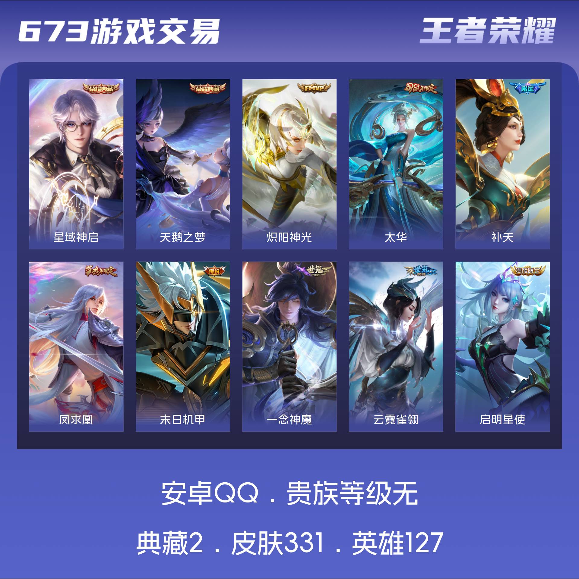安卓Q-V9-皮肤331 英雄127 非凡王者 荣耀典藏2 传说22 星传说2 其他皮肤313