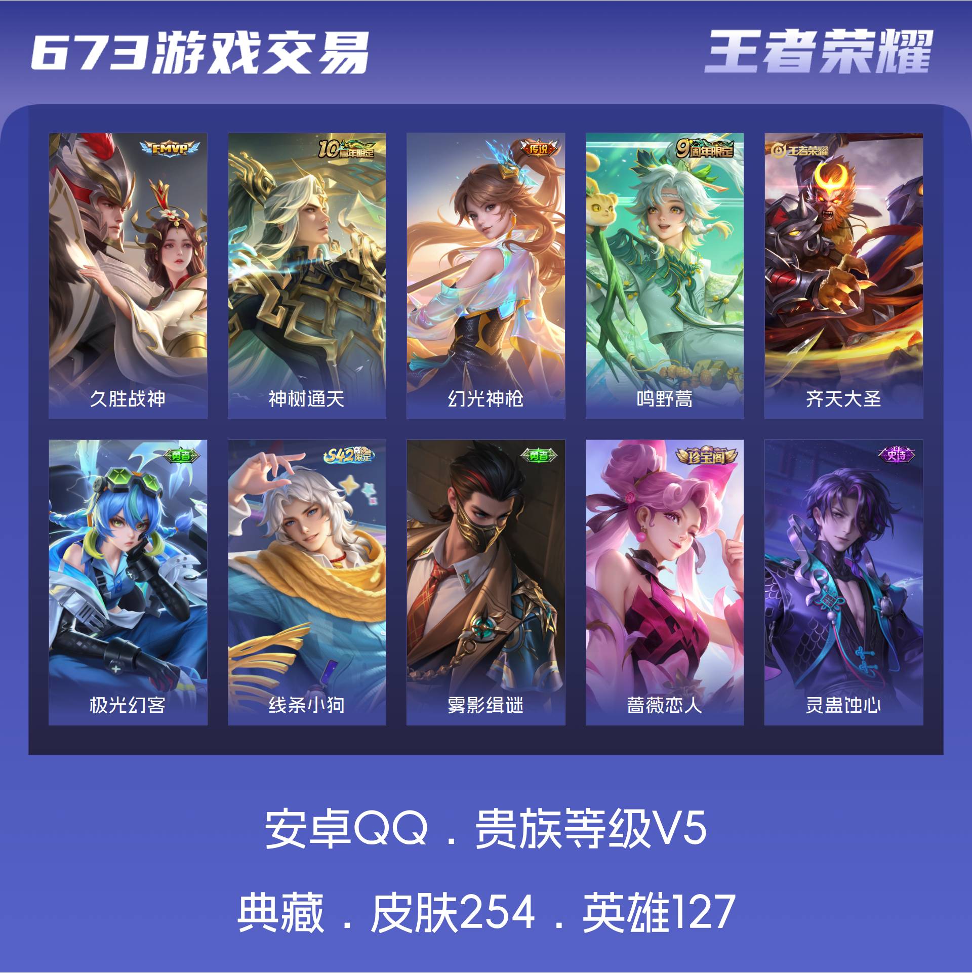 V5 皮肤254 英雄127 最强王者 传说4