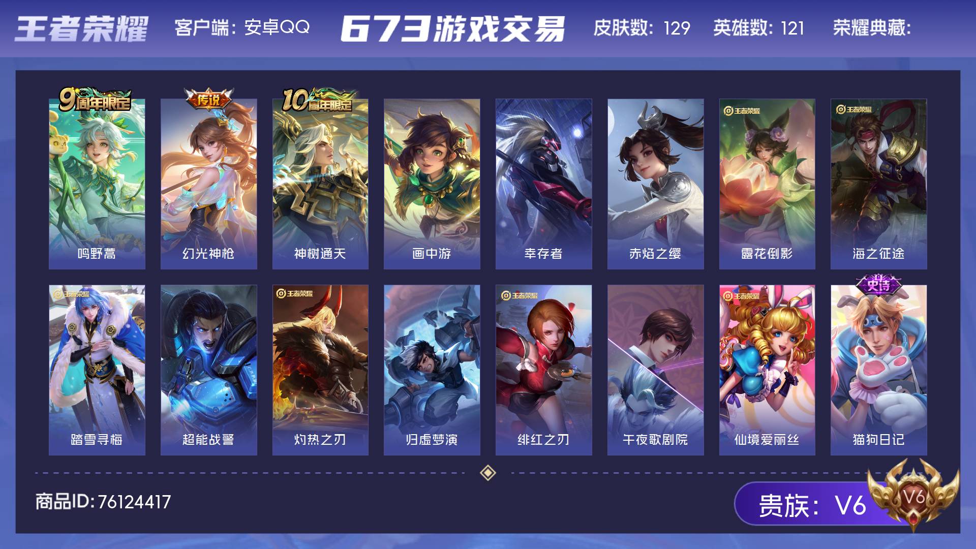 苹果Q-v8-皮肤343 英雄128 非凡王者 荣耀典藏2 无双皮肤2 珍品传说3 传说26