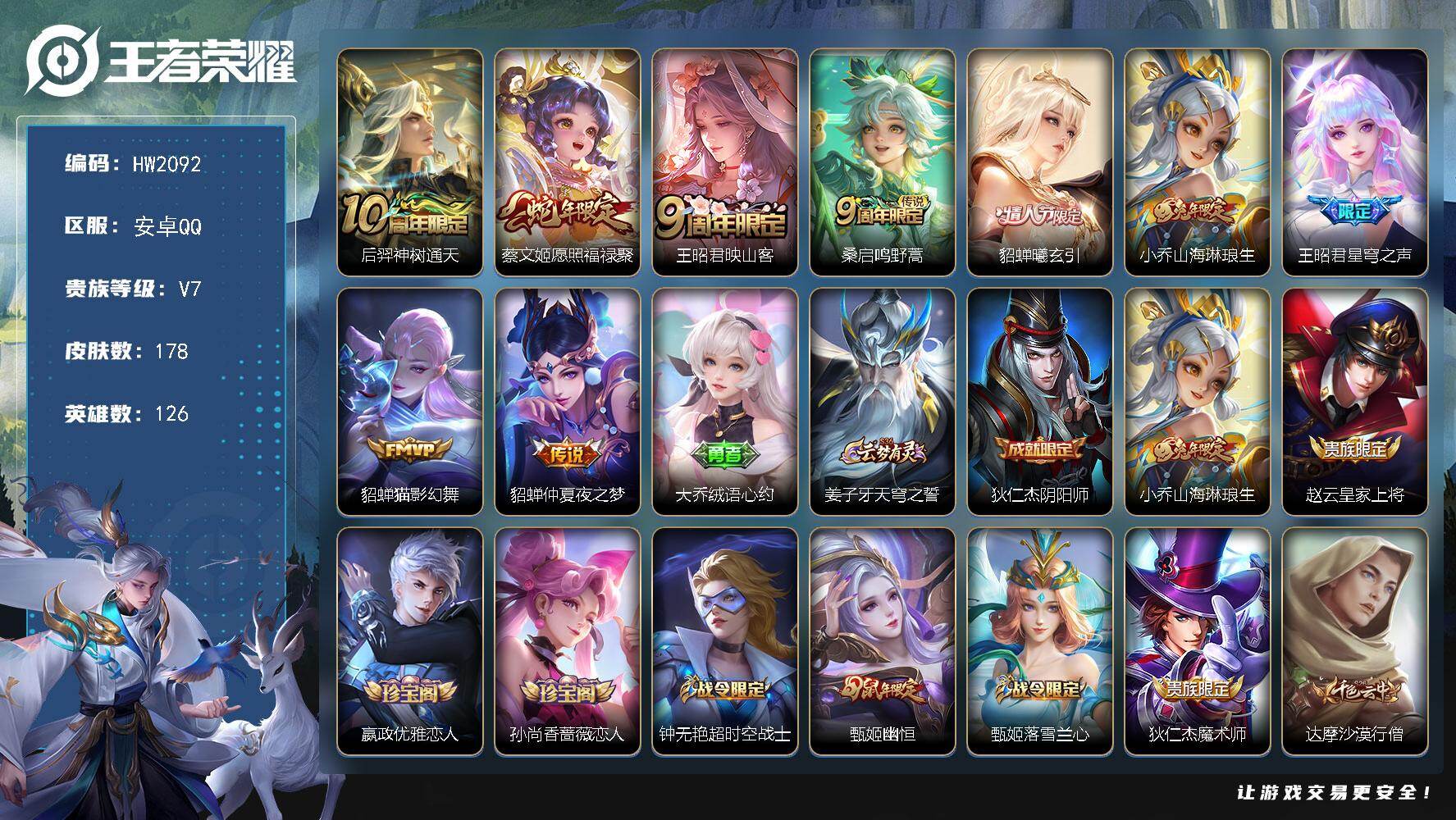 V7 1典藏 7传说 126英雄 202皮肤 可修改实名 【英雄全皮】空空儿全