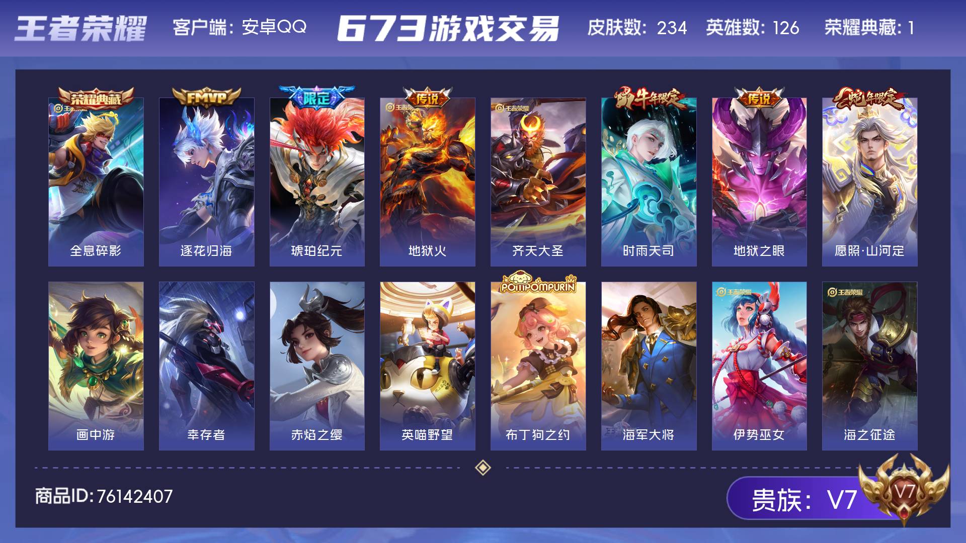 皮肤574 英雄129 传奇王者 荣耀典藏20 珍品无双1 无双皮肤4 珍品传说4 传说89-安卓QQ-