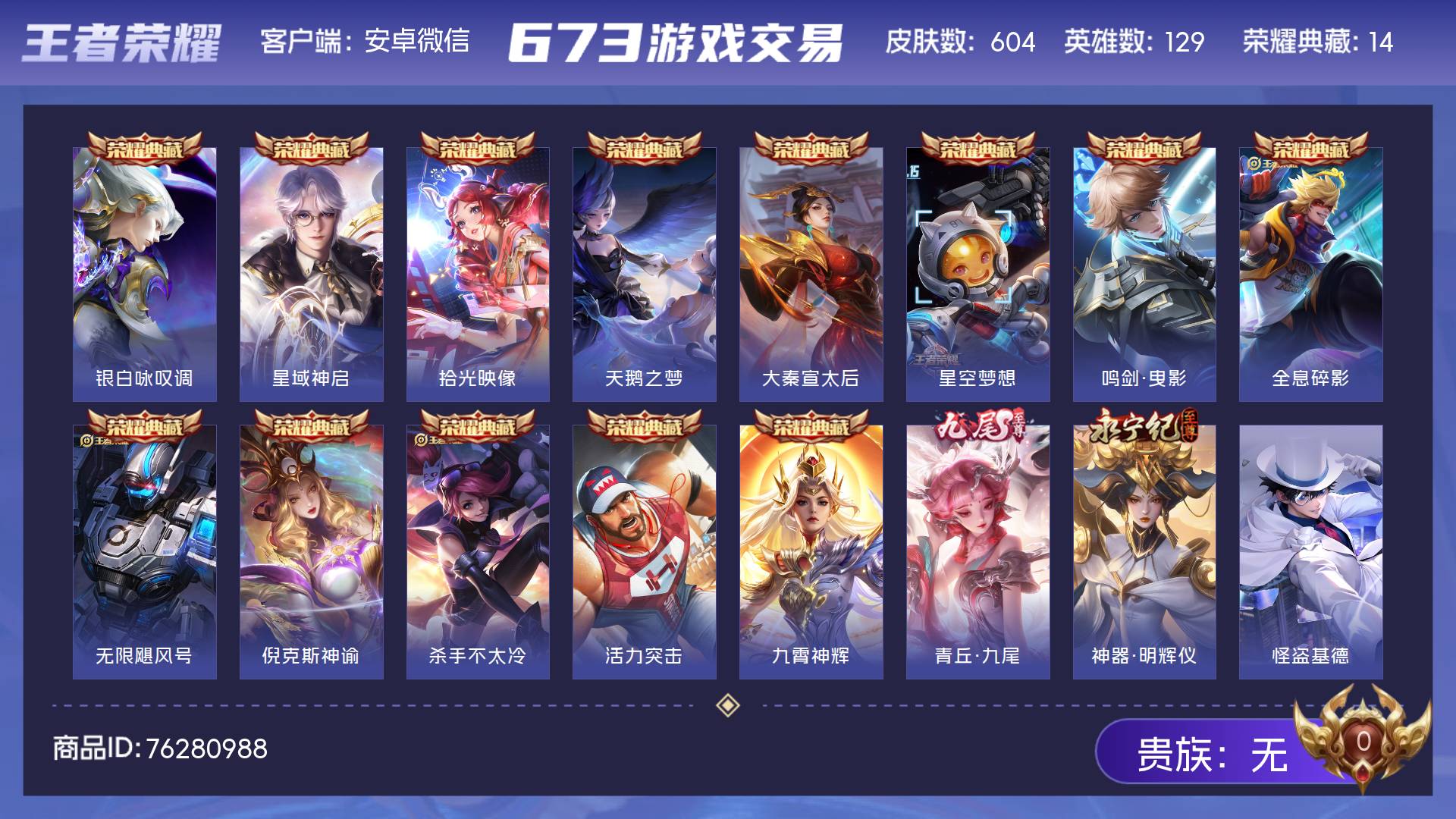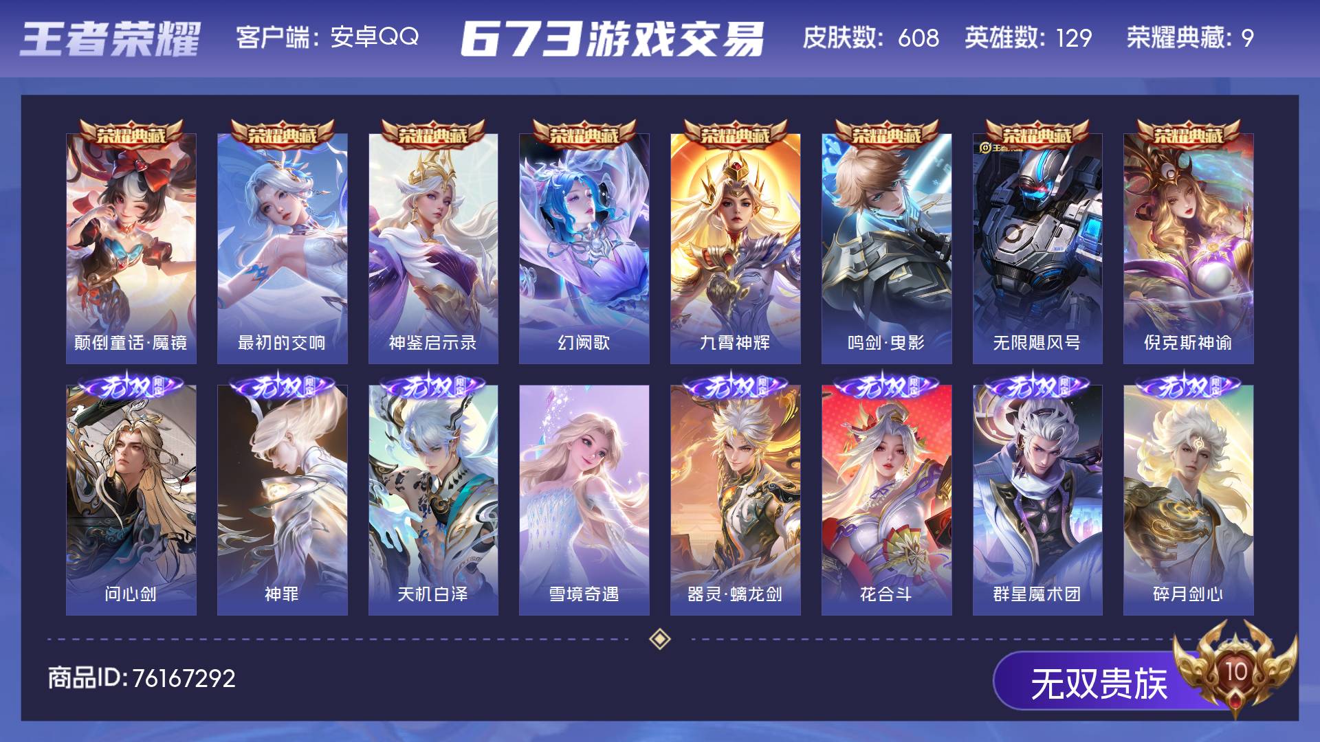 无双贵族 皮肤608 英雄129 最强王者 荣耀典藏9 无双皮肤9 珍品传说3 传说93