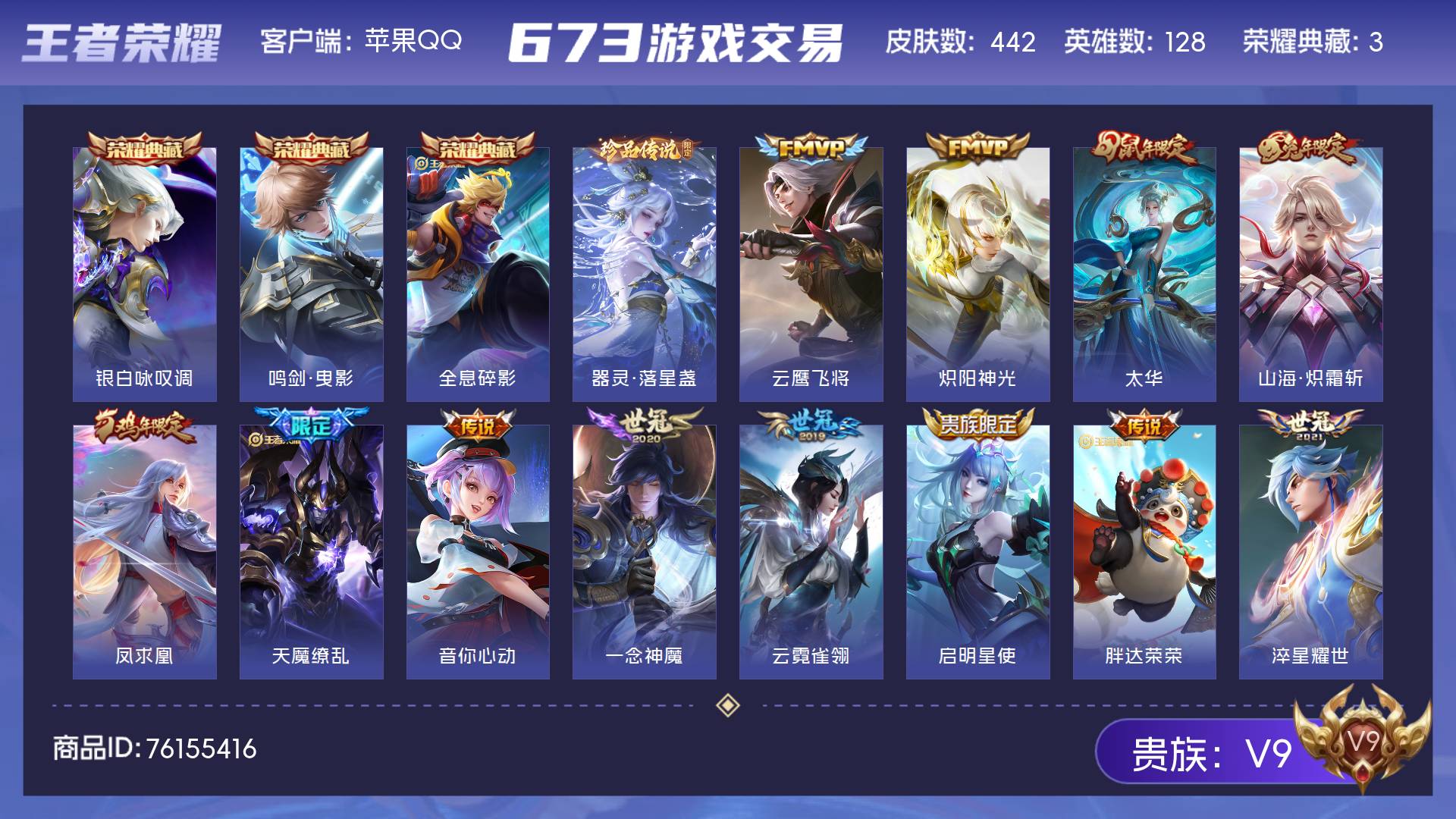 皮肤442 英雄128 荣耀王者 荣耀典藏3 珍品传说1 传说33-v9