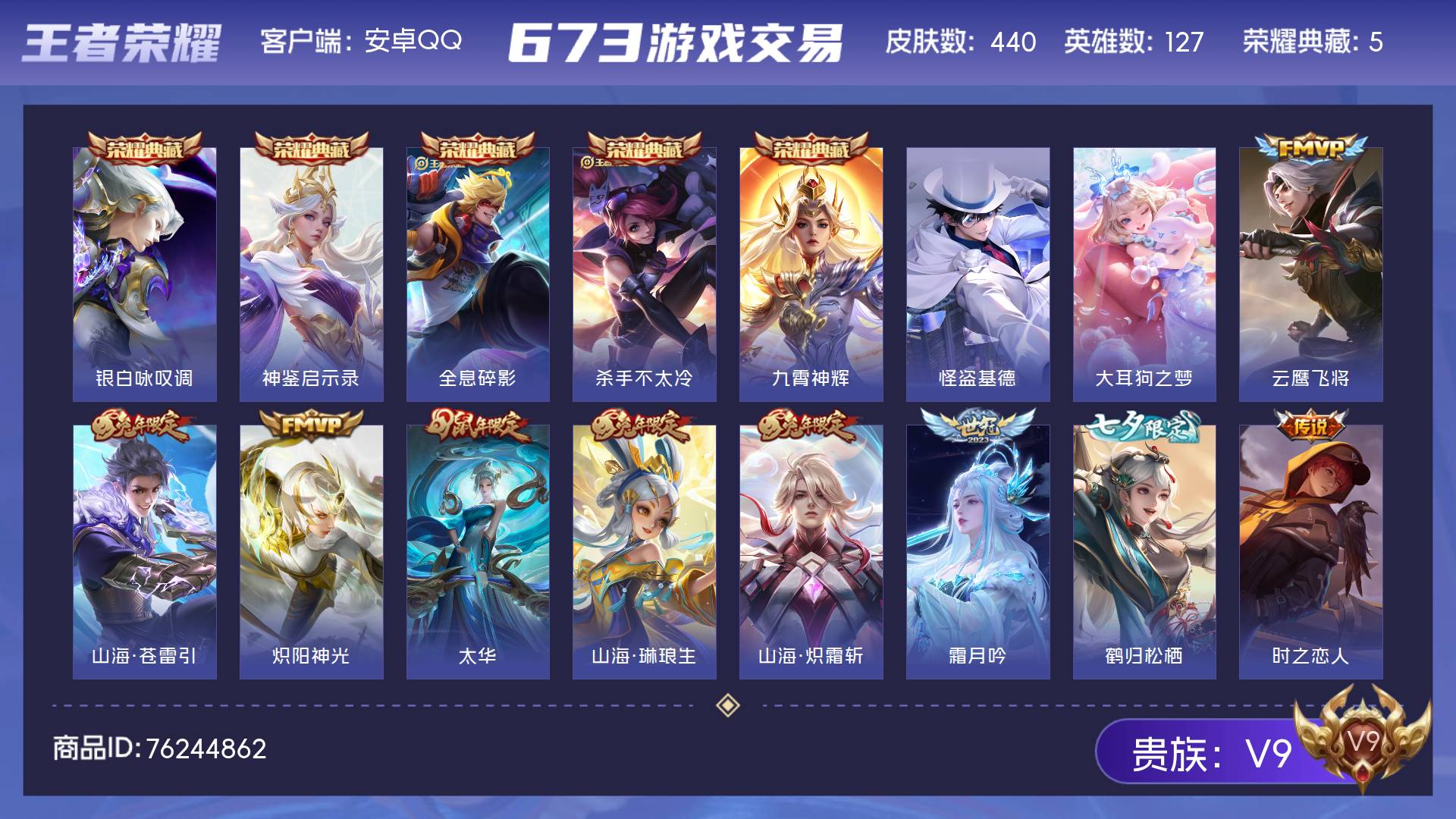 安卓QQ-可二次-皮肤440 英雄127 荣耀典藏5 珍品传说2 传说35-