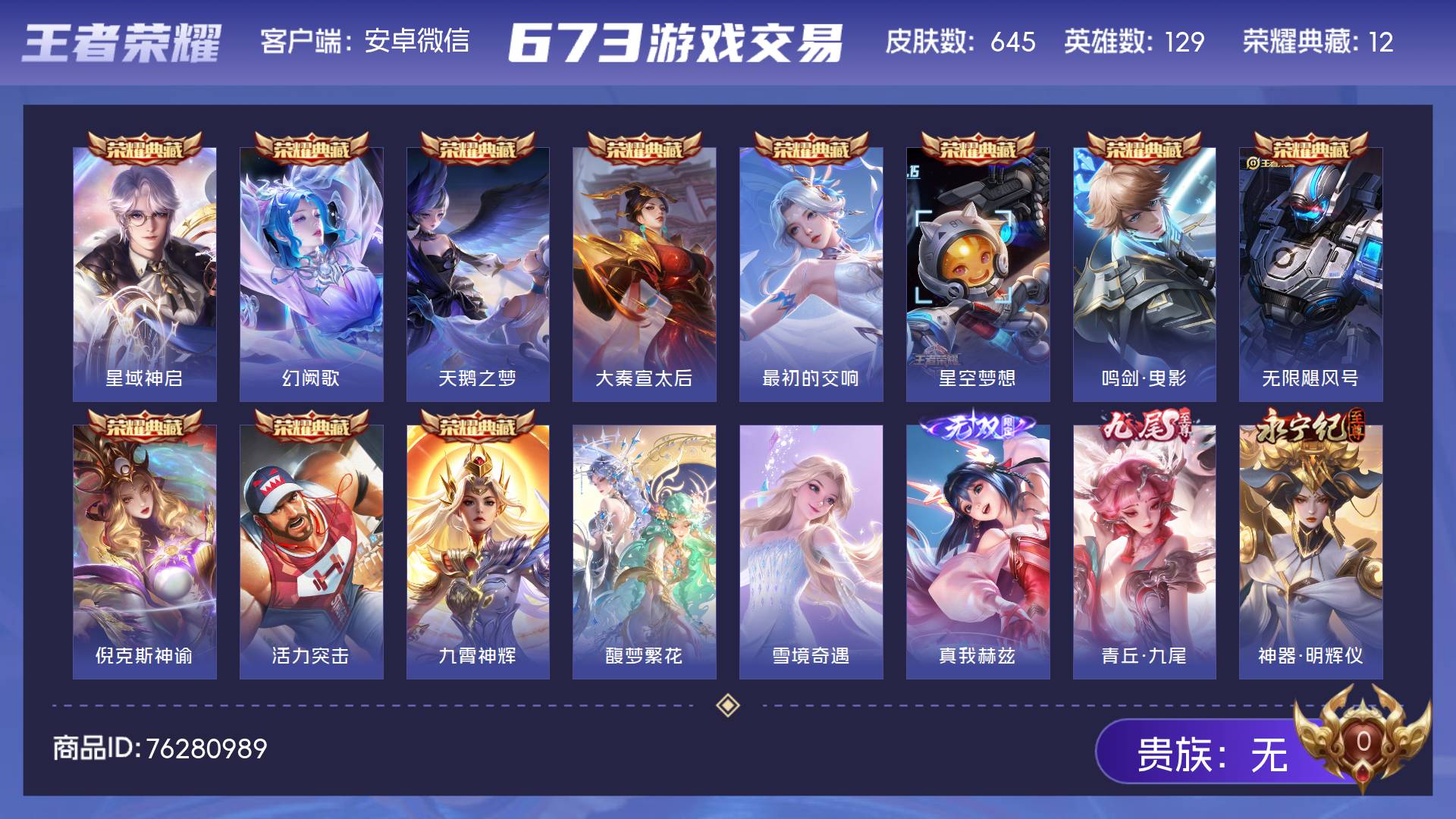 安卓微信-皮肤645 英雄129 无双王者 荣耀典藏12 珍品无双1 无双皮肤4 珍品传说6 传说112-一个小兵,个性按键80多个,天幕7个