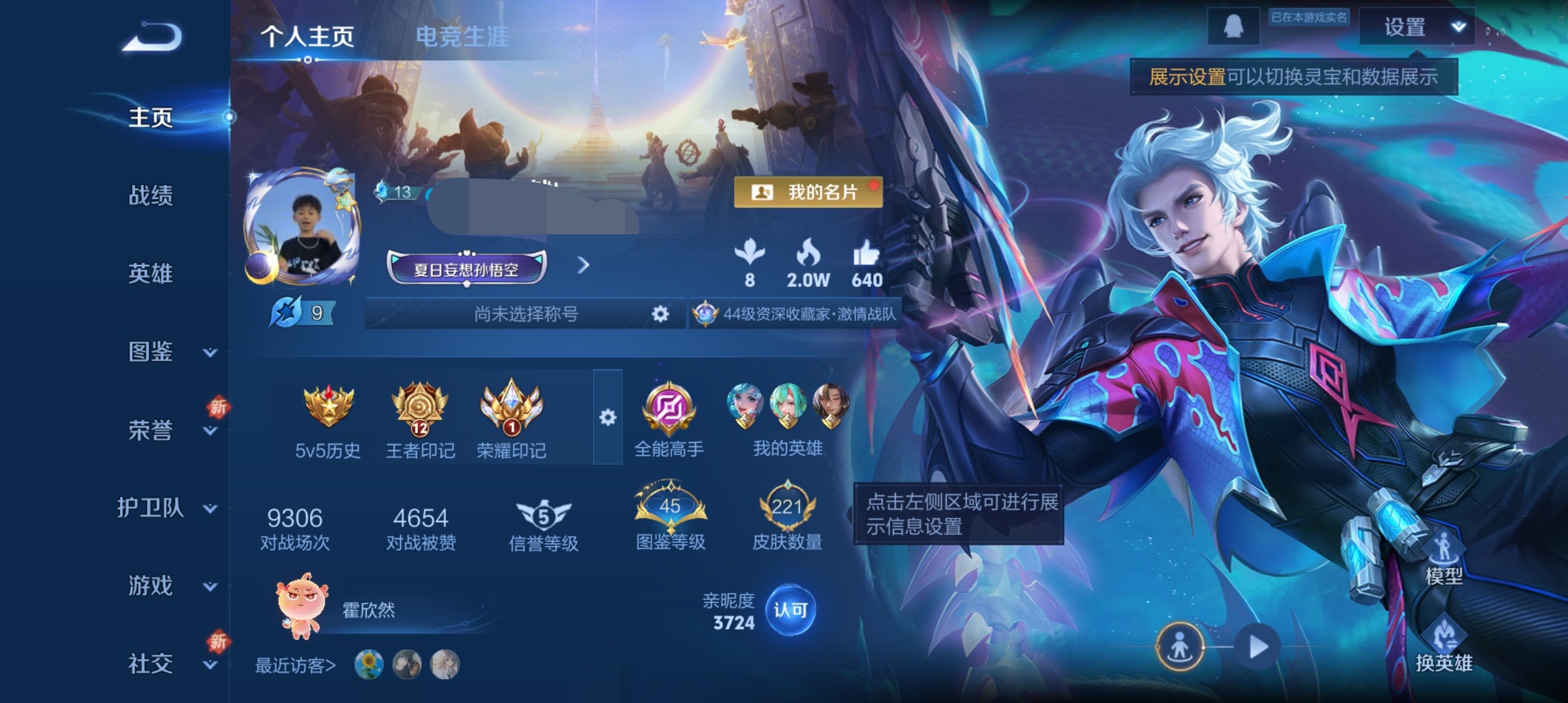 V9 皮肤192 英雄129 永恒钻石 荣耀典藏4 无双皮肤2 珍品传说1 传说25 其他皮肤167