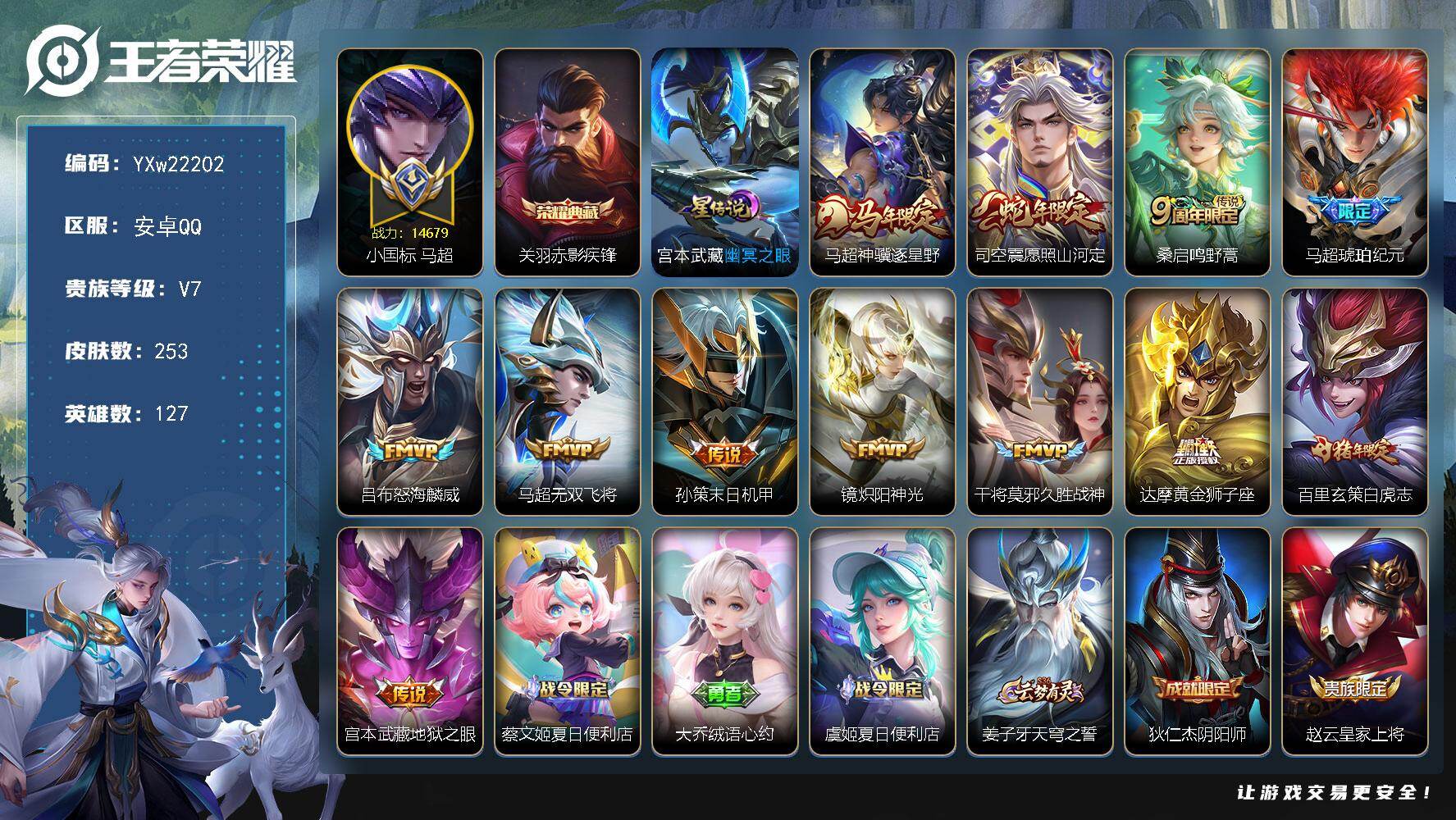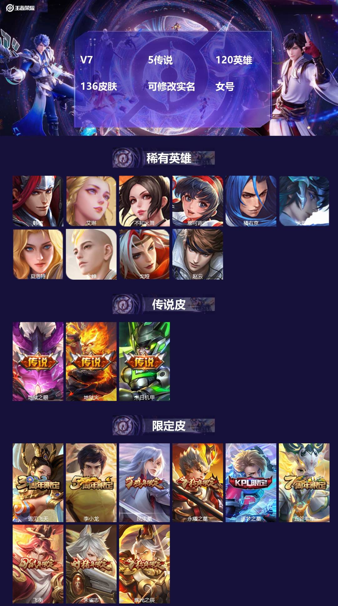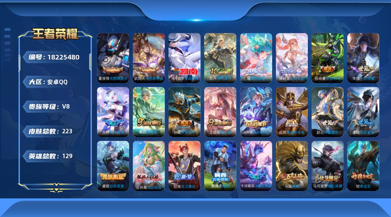 苹果Q-V7-至尊星耀IV段位-128英雄-286皮肤-1典藏皮肤-4无双-1