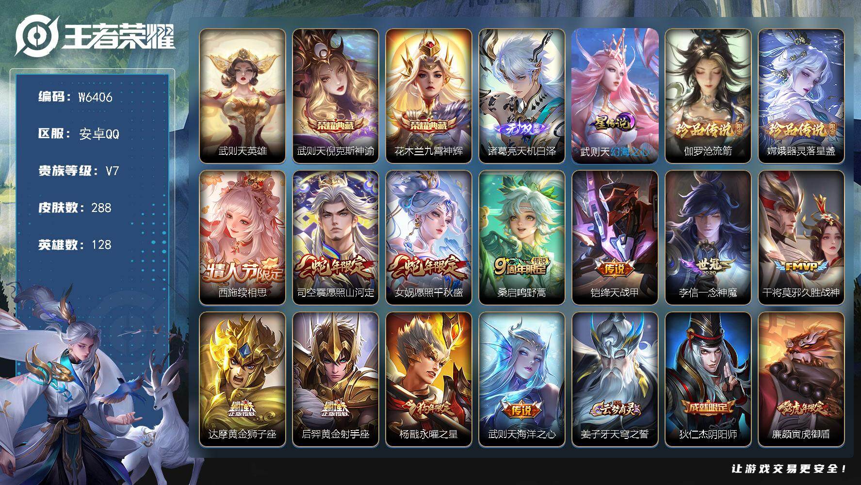 【2无双1珍品24传说267皮肤1典藏1星元 秒换绑不用等】安卓Q-127英雄