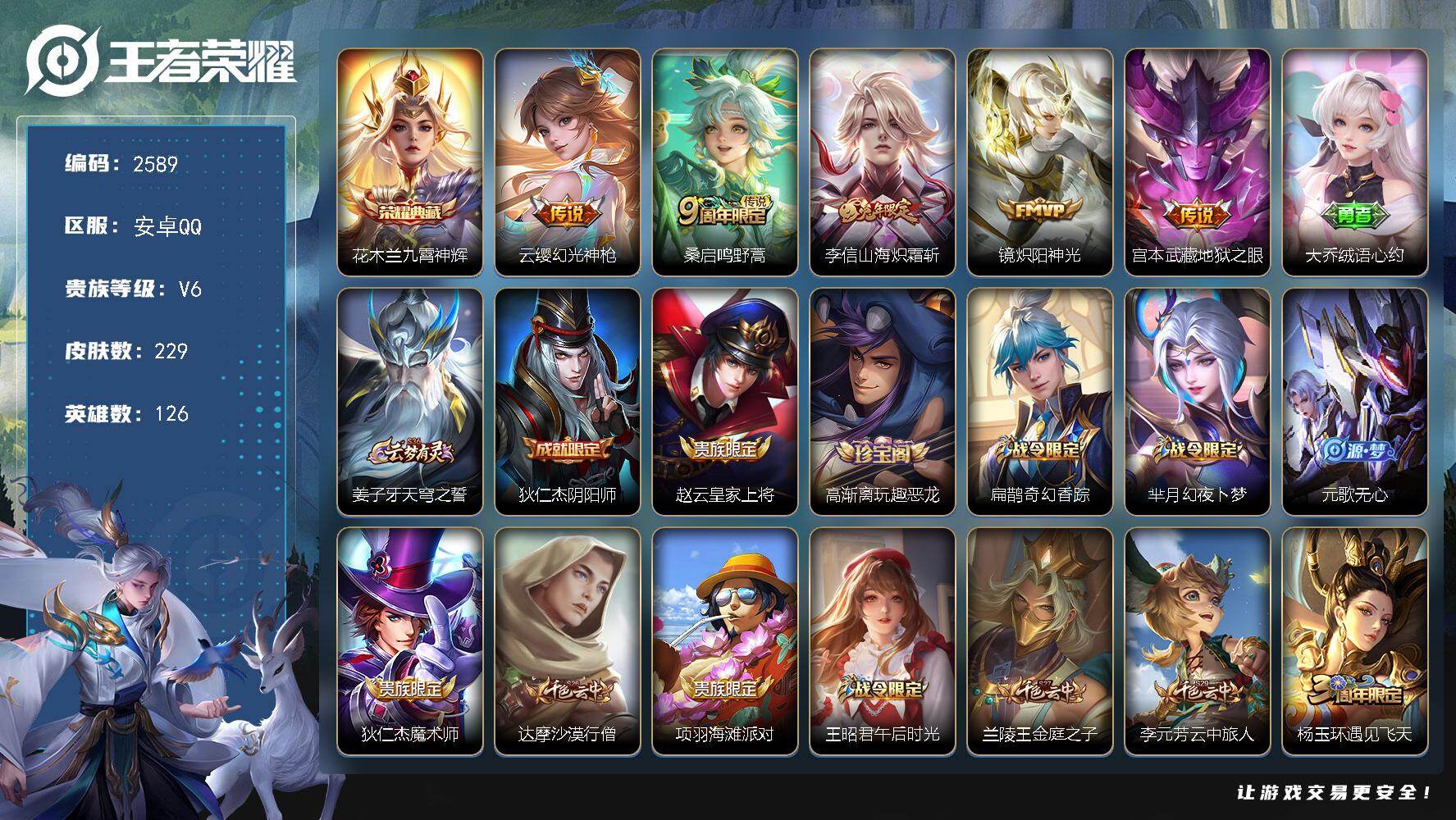 【205皮肤1水晶1星元7传说可秒换绑】安卓QQ-127英
