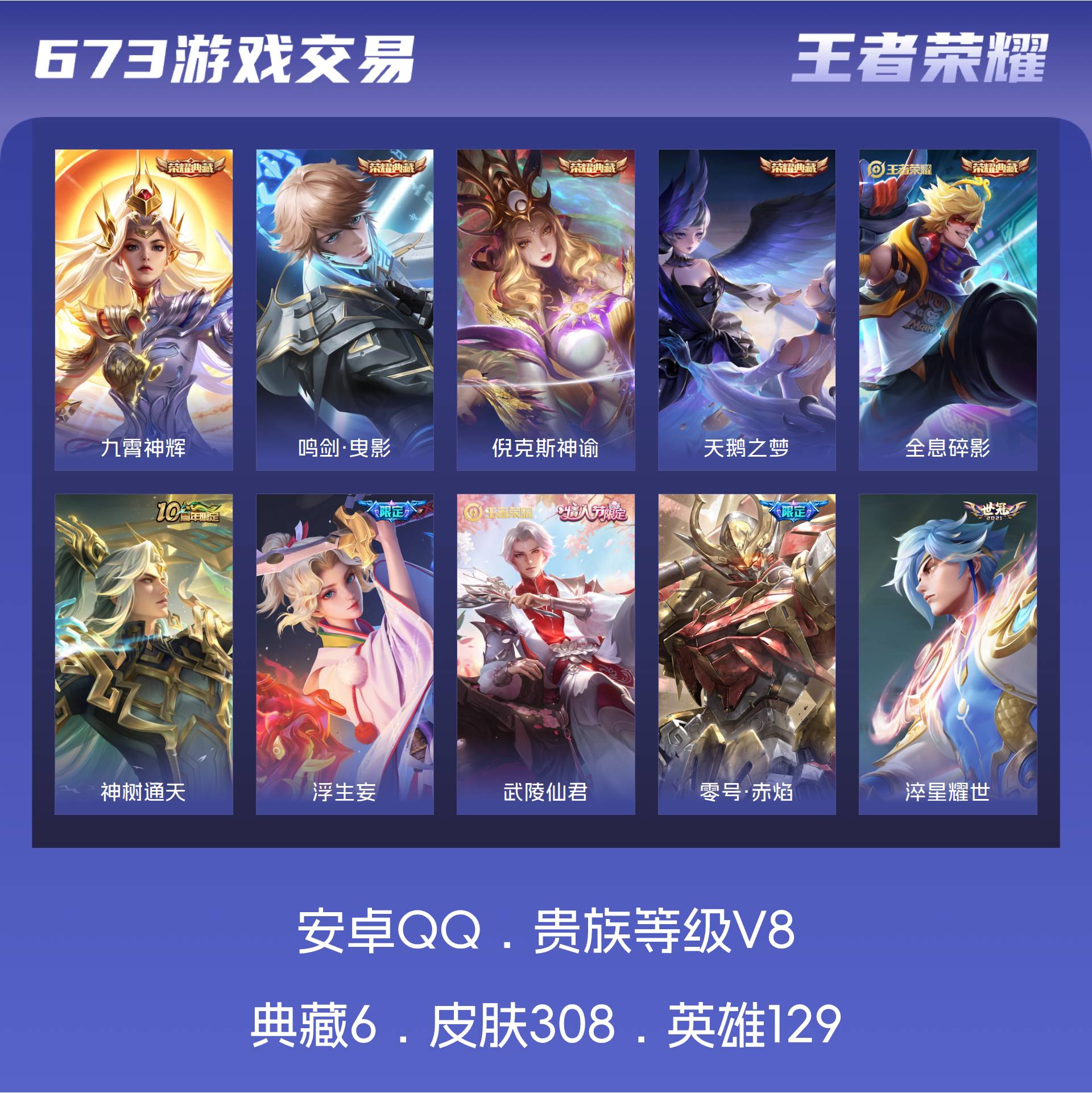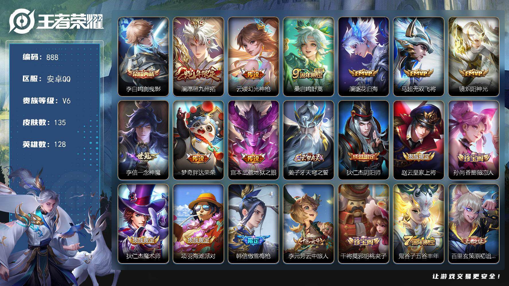 2010519 王者荣耀账号 安卓Q-V6-至尊星耀V段位-128英雄-135