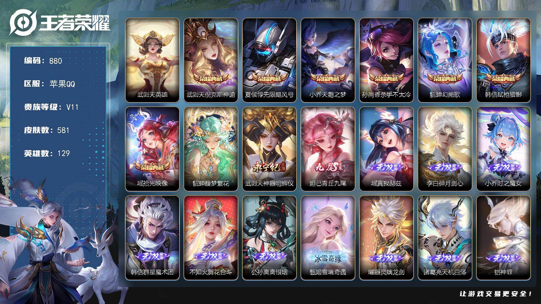 精品号,传承还在,V11-至尊星耀V段位-129英雄-581皮肤-7典藏皮肤-