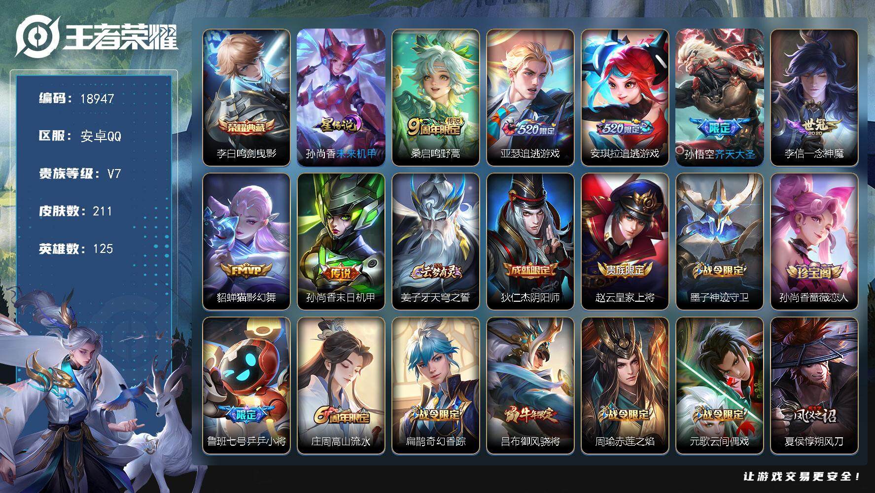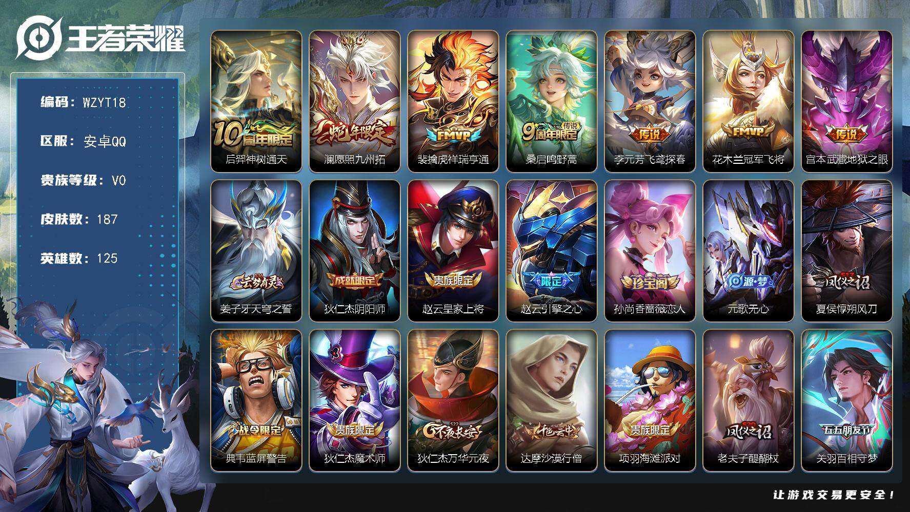 皮肤187 英雄125 无双王者 传说7 其他皮肤72-