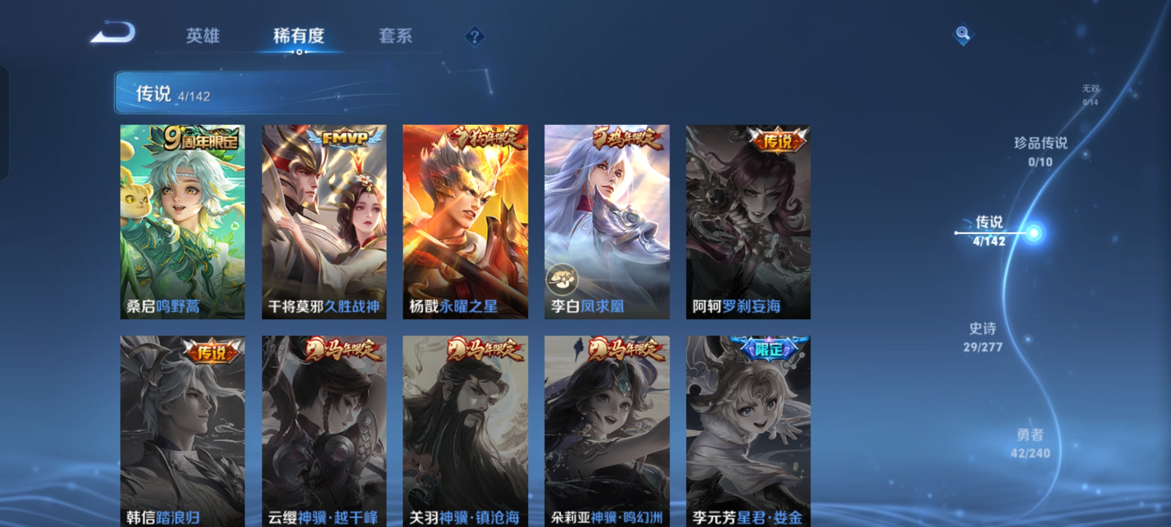 V7 皮肤144 英雄125 永恒钻石 无双皮肤1 星传说2 传说13