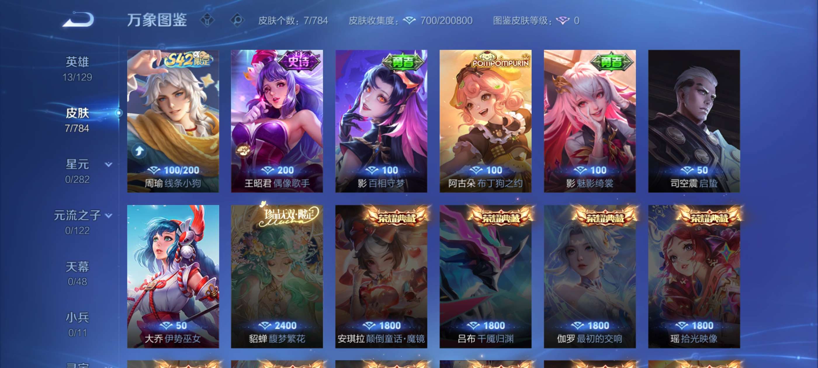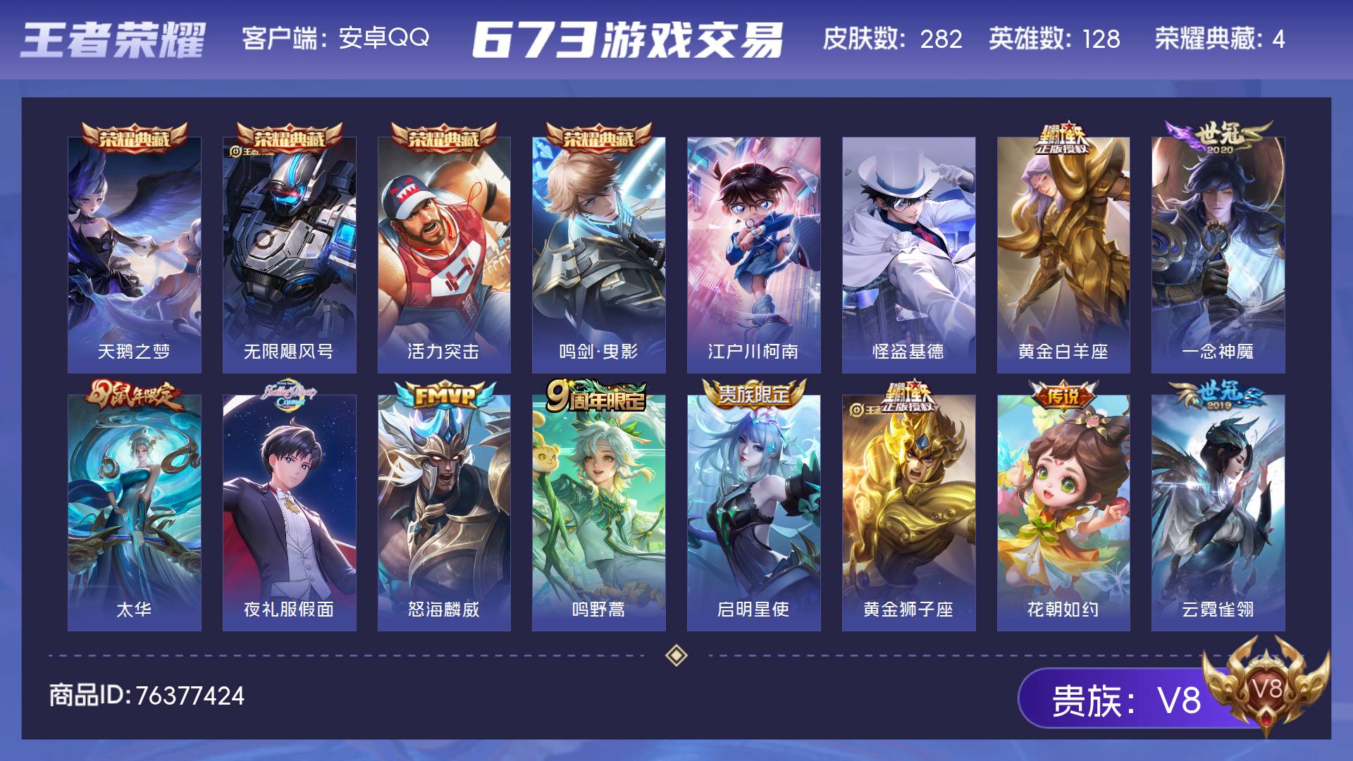 V8 皮肤282 英雄128 永恒钻石 荣耀典藏4 珍品传说2 传说18